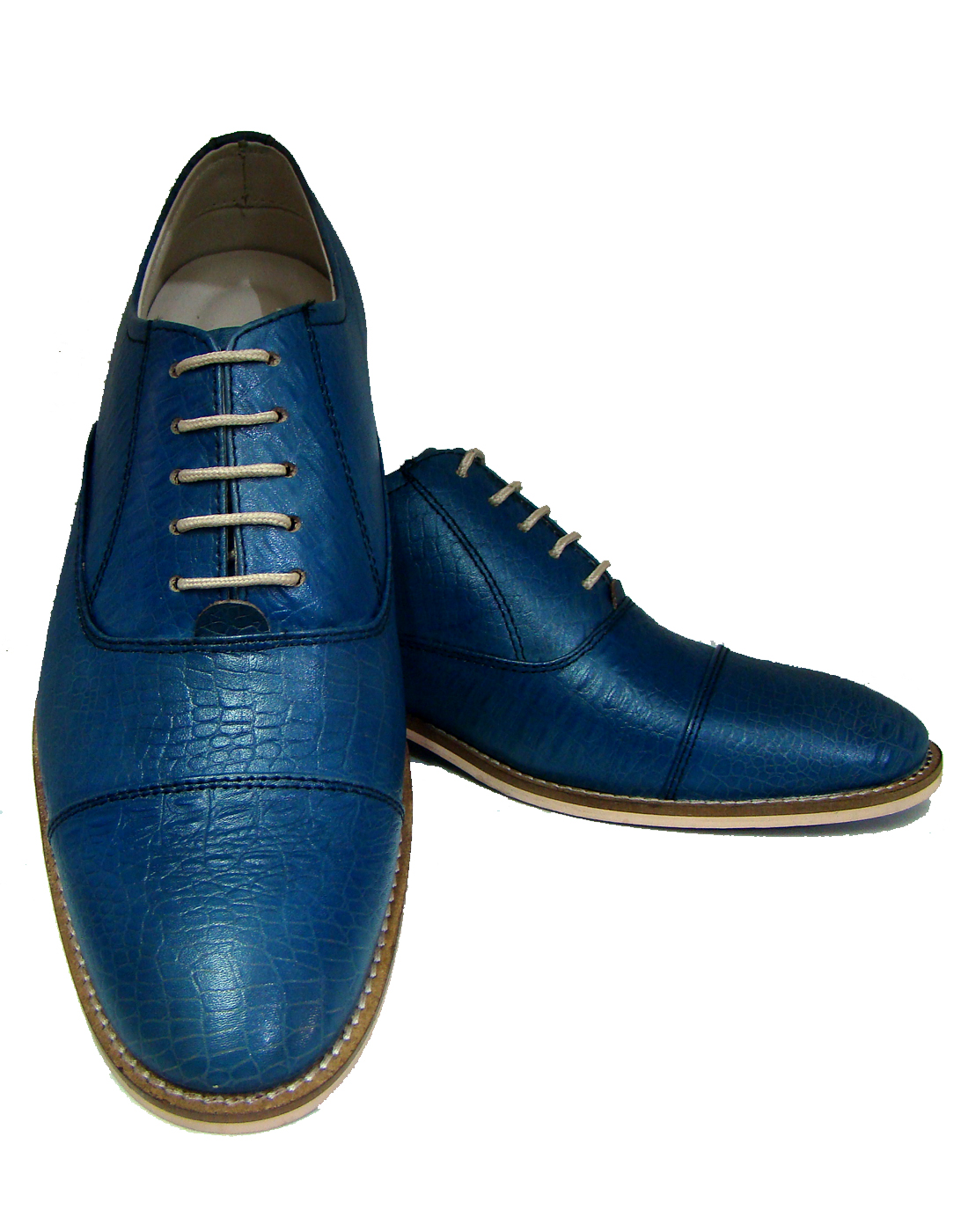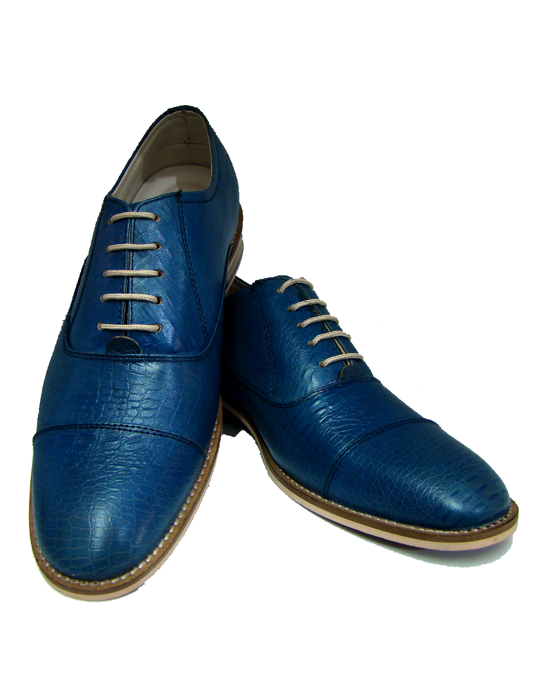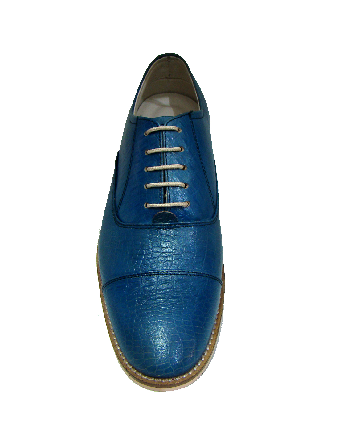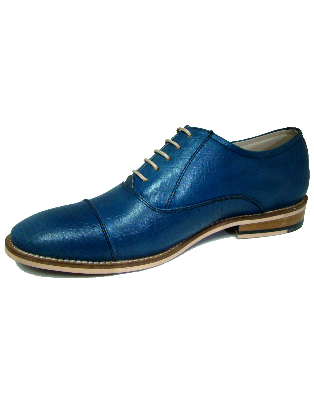 ELEGANT BLUE OXFORD SHOES WITH TWO-TONE HAND FINISH CROCO LEATHER ARTICLE-HU223