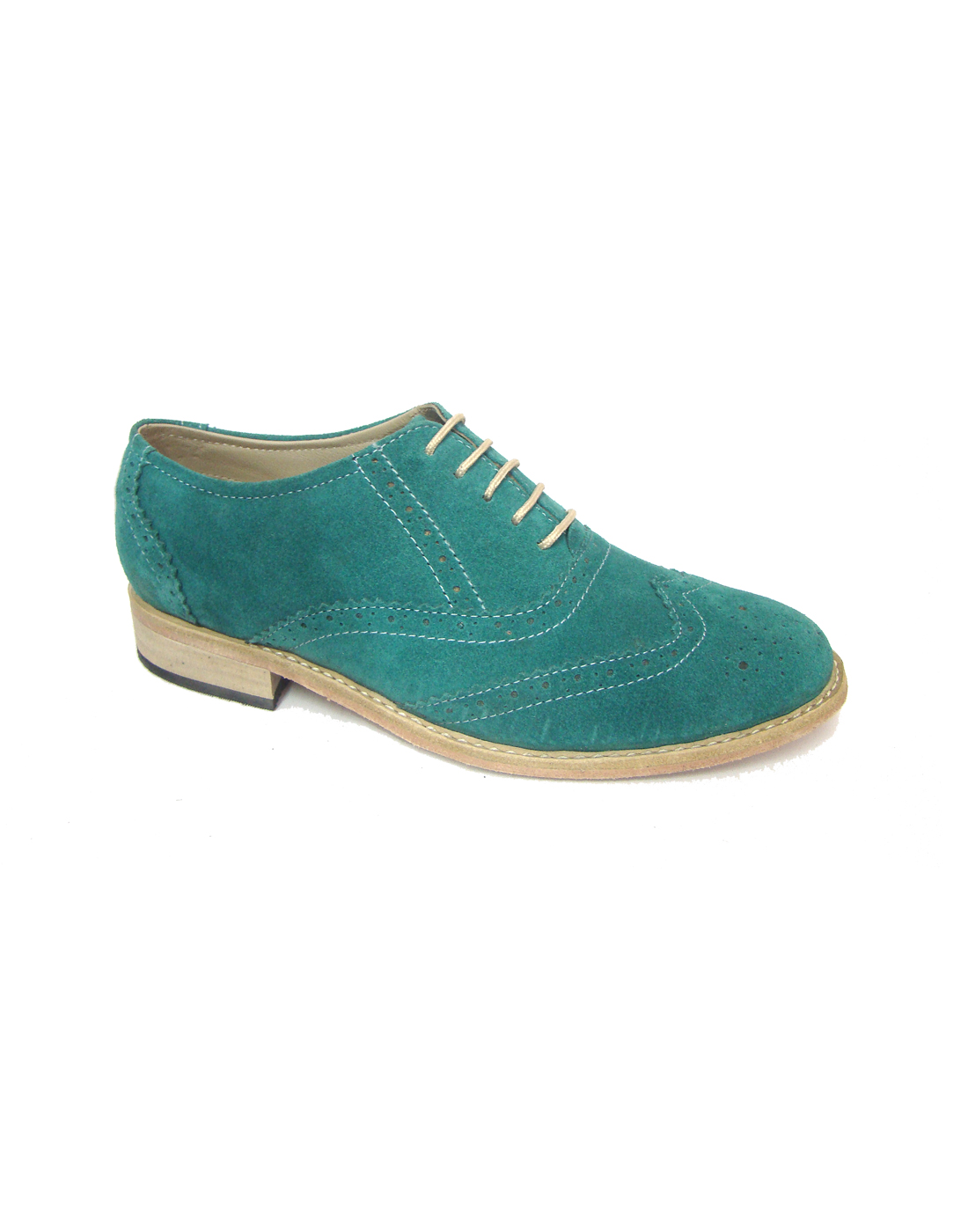 Turquoise Brogue Shoes, Suade Leather. Article-HS114