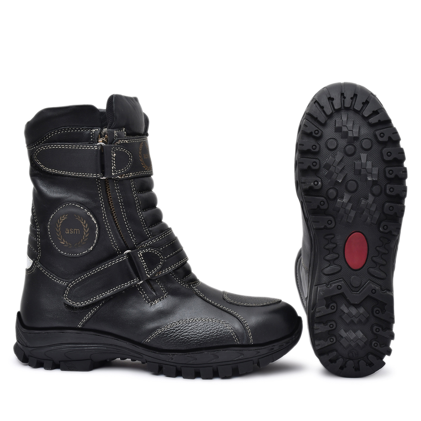 Biker Boots : Black Leather Waterproof Boots with Steel Toe, Heavy Duty Rubber Sole. Article : 708Black