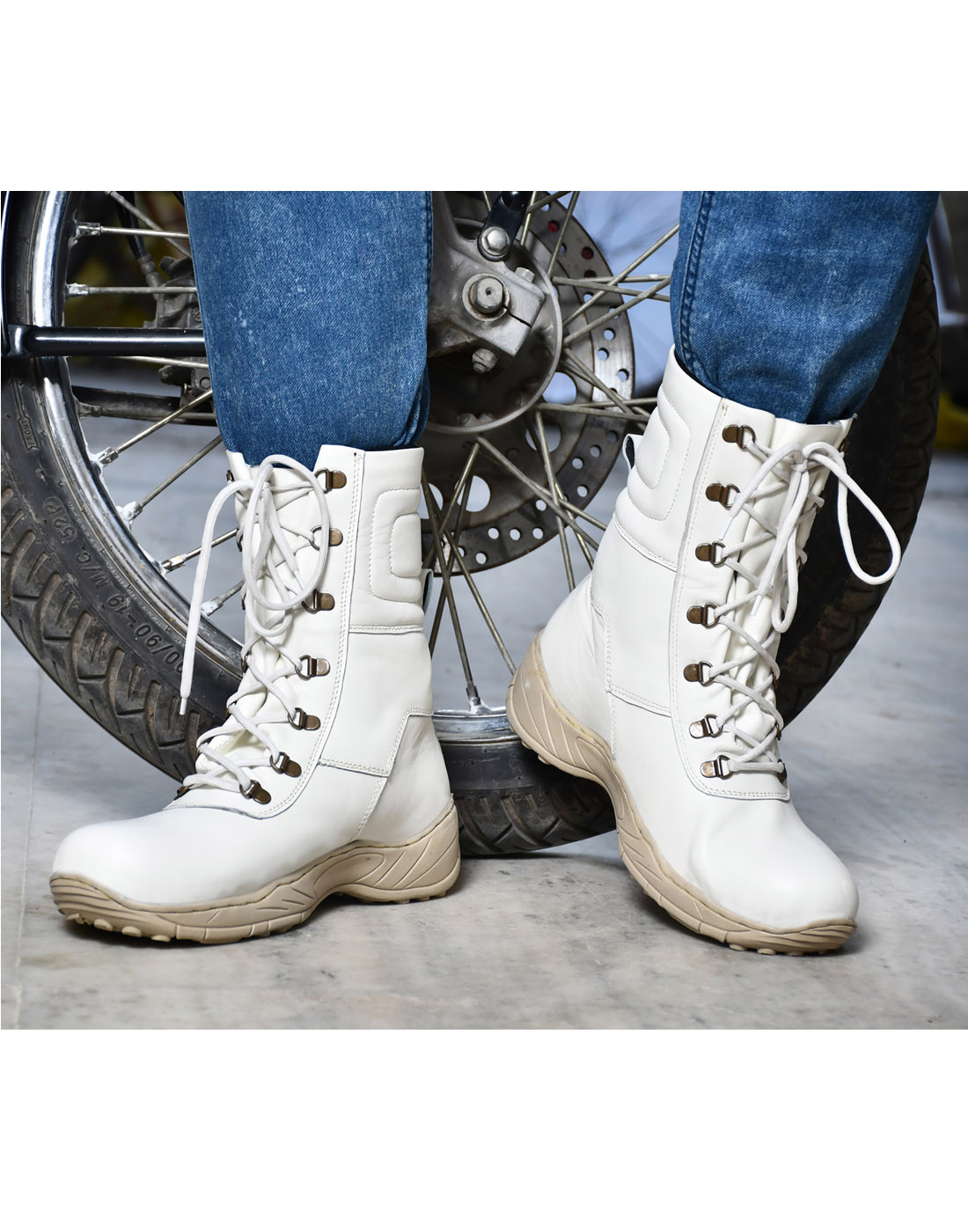 Snow Boots : White Leather Waterproof Snow Boots, Heavy Duty Phylon Sole. Article : 704white-waterproof