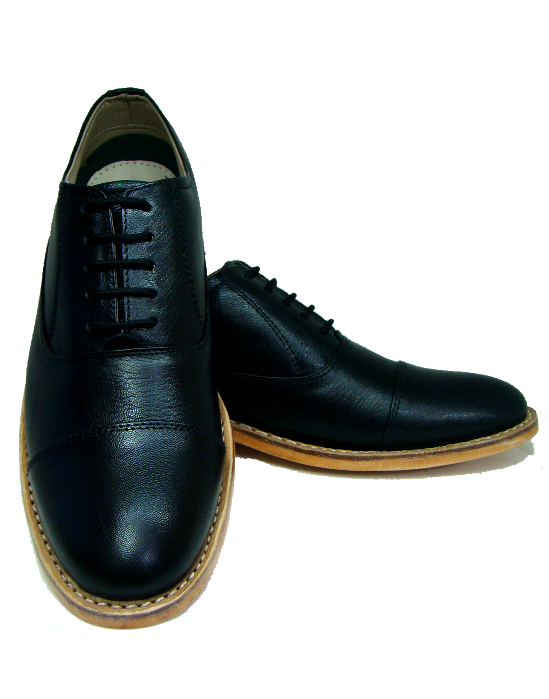 BLACK OXFORD GOODYEAR WELTED SHOES GOAT LEATHER ARTICLE-HG104