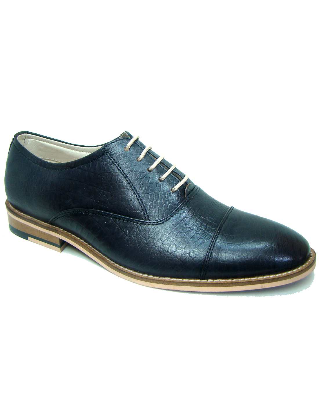 BLACK OXFORD SHOES WITH TWO-TONE HAND FINISH CROCO LEATHER ARTICLE-HU221