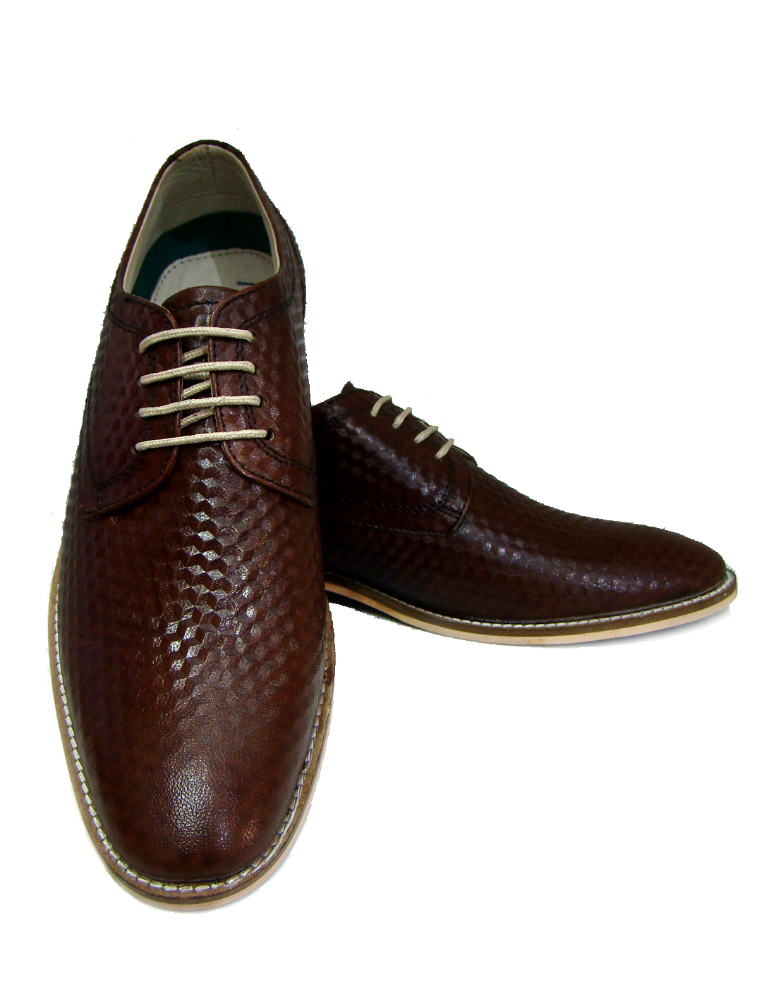 BROWN DERBY SHOES WITH TWO-TONE HAND FINISH PYRAMID LEATHER ARTICLE-HU192