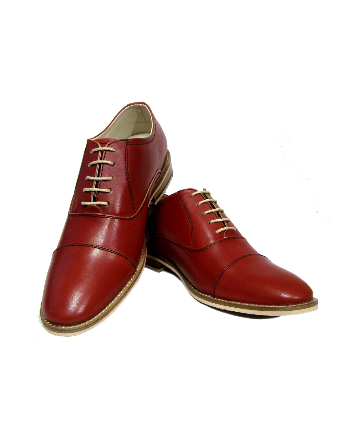 CHERRY RED OXFORD SHOES WITH TWO-TONE HAND FINISH SOFTY LEATHER ARTICLE-HU175