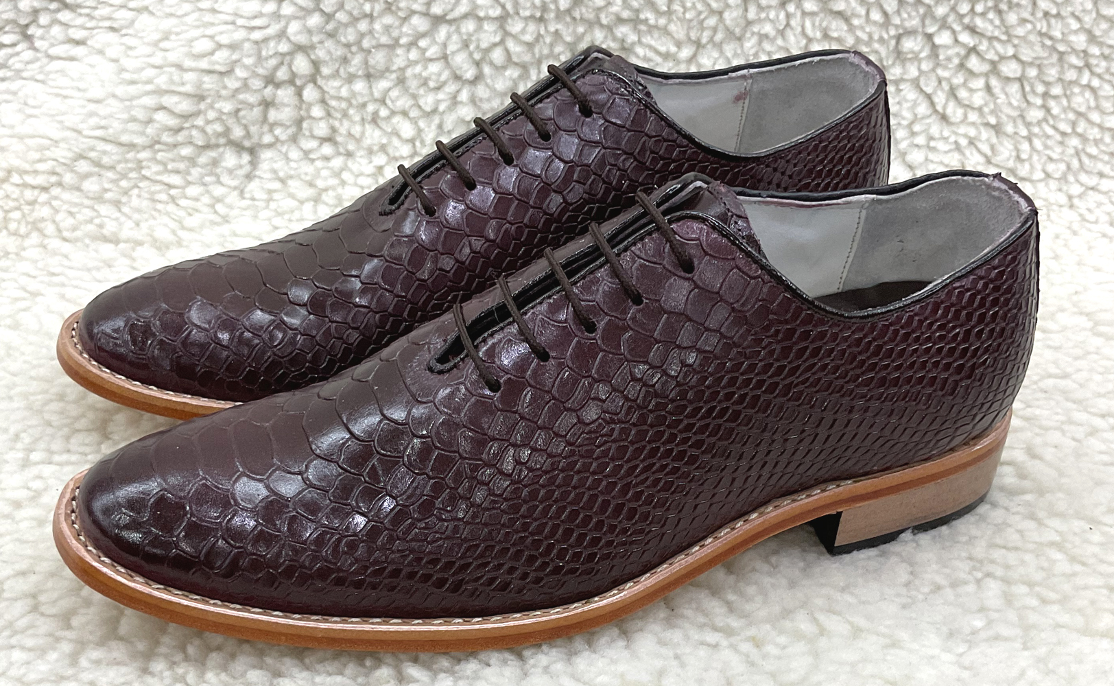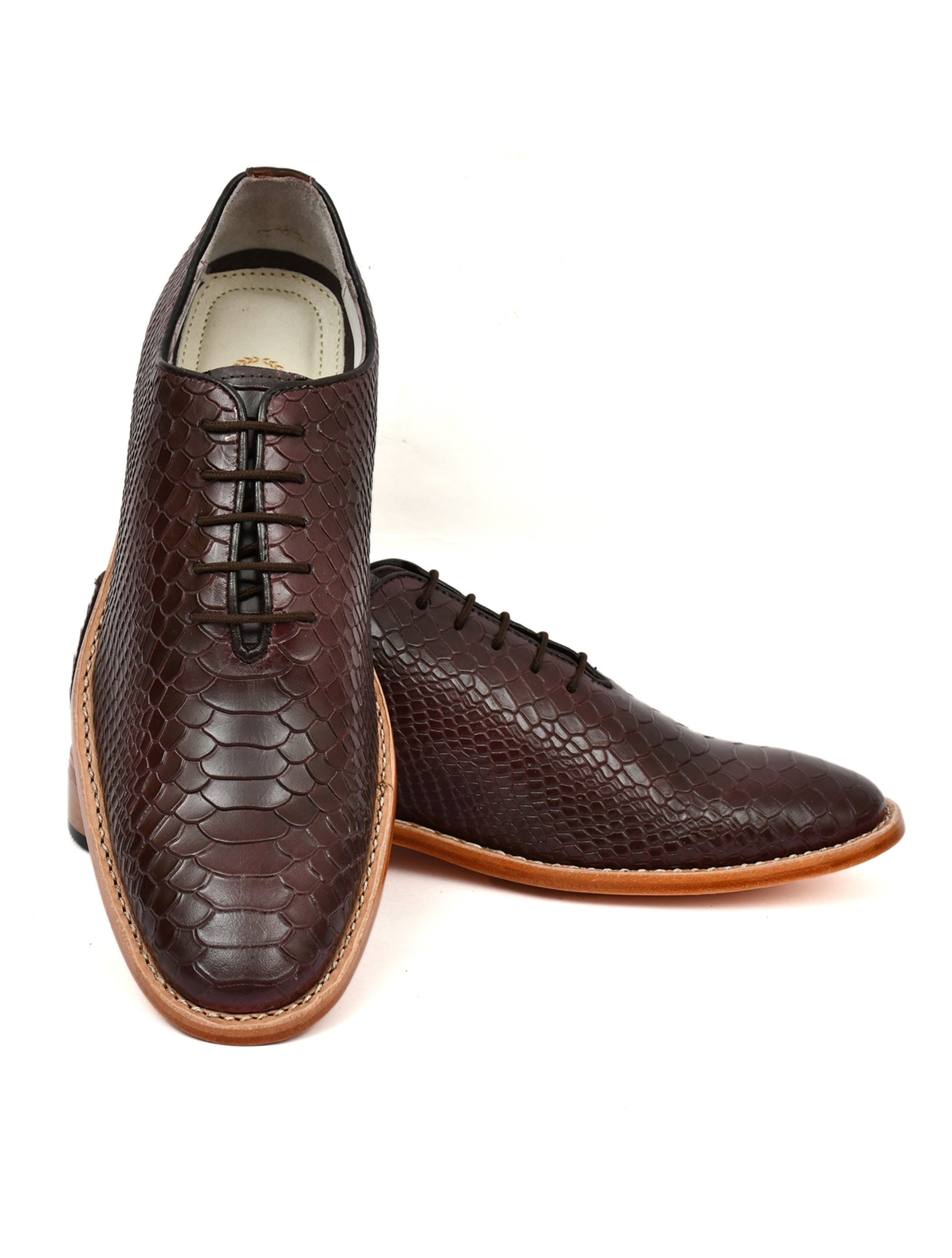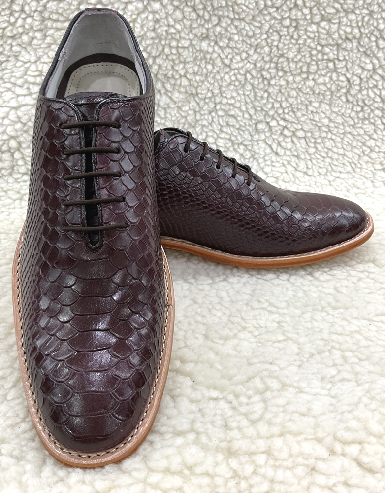 Type : Brown Cobra embossed Leather Derby Shoes