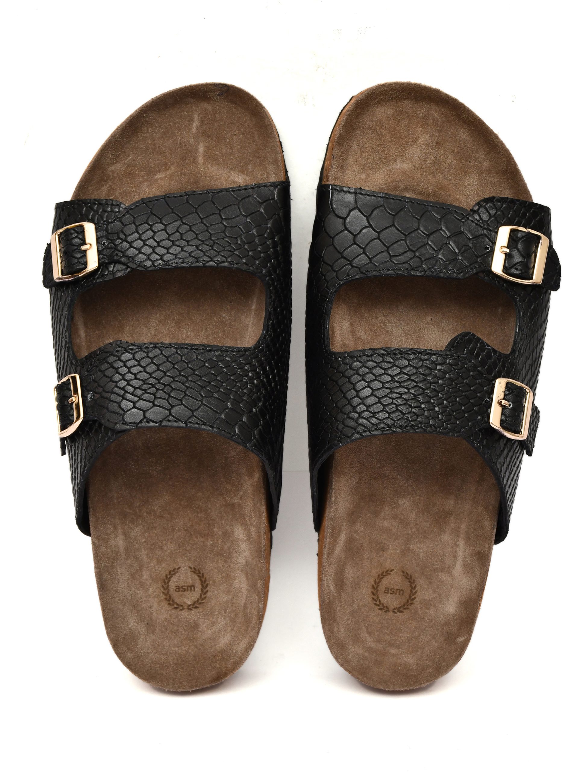 Cork Sandals : Genuine Cobra embossed leather with Cork footpad Sandals for men by asm.