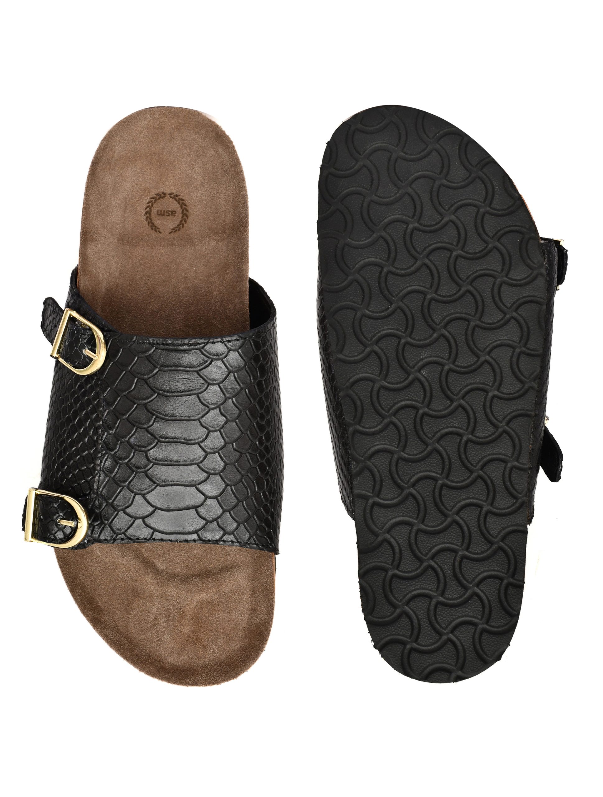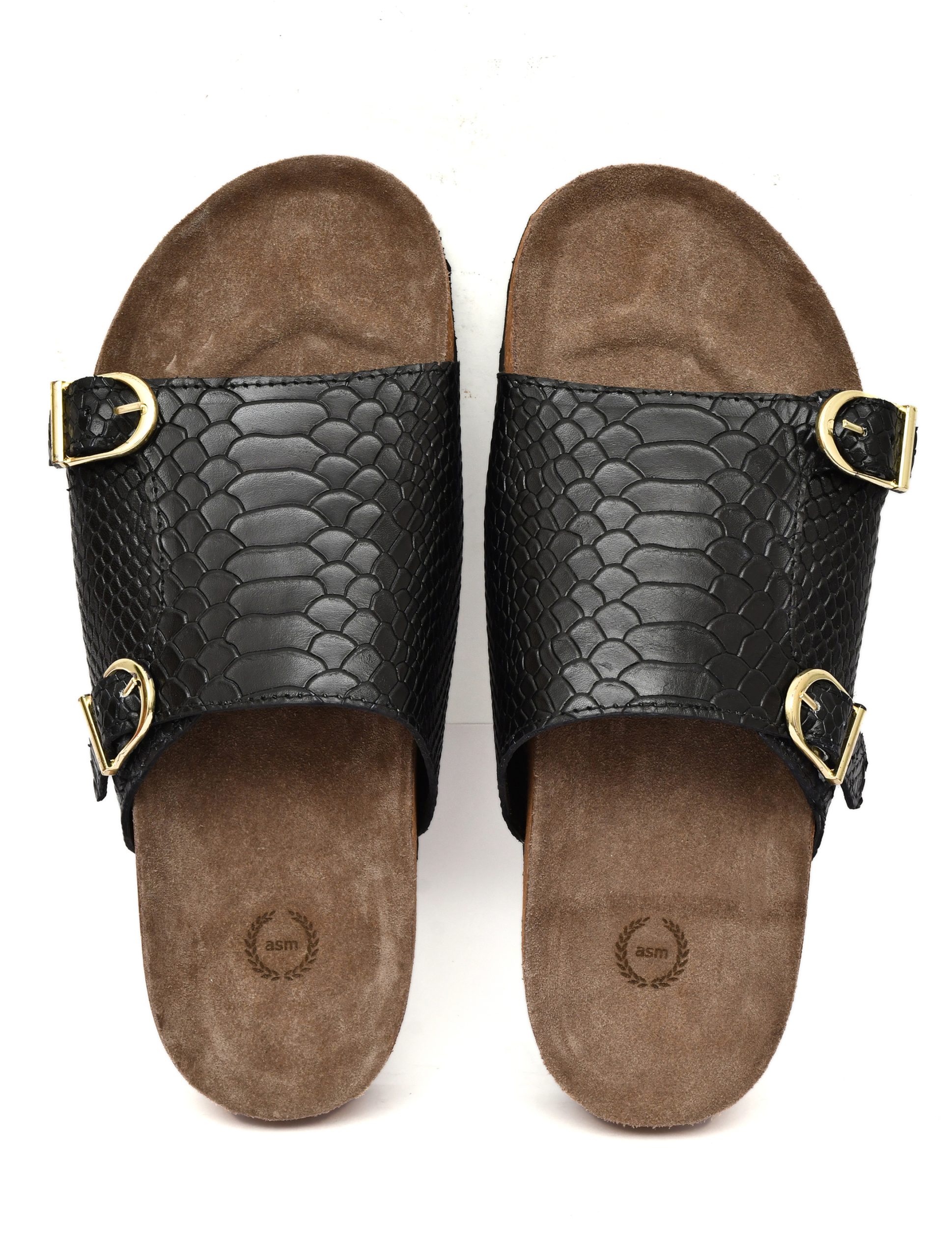 Cork Sandals : Genuine Cobra embossed leather with Cork footpad Sandals for men by asm.