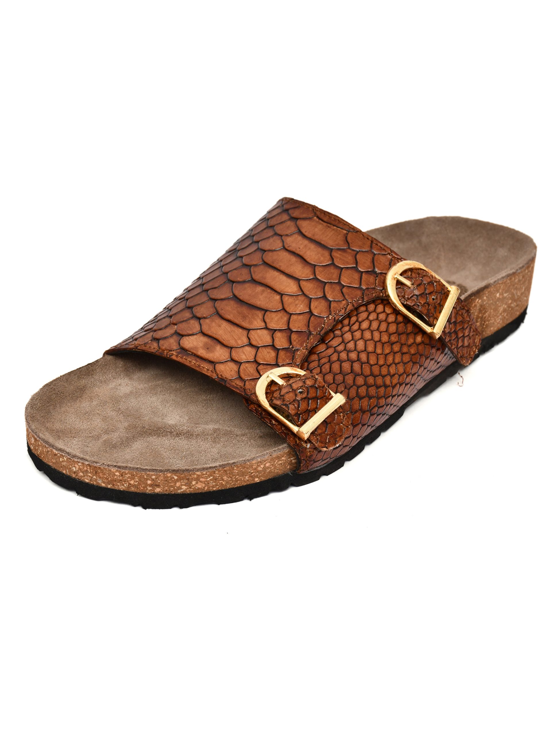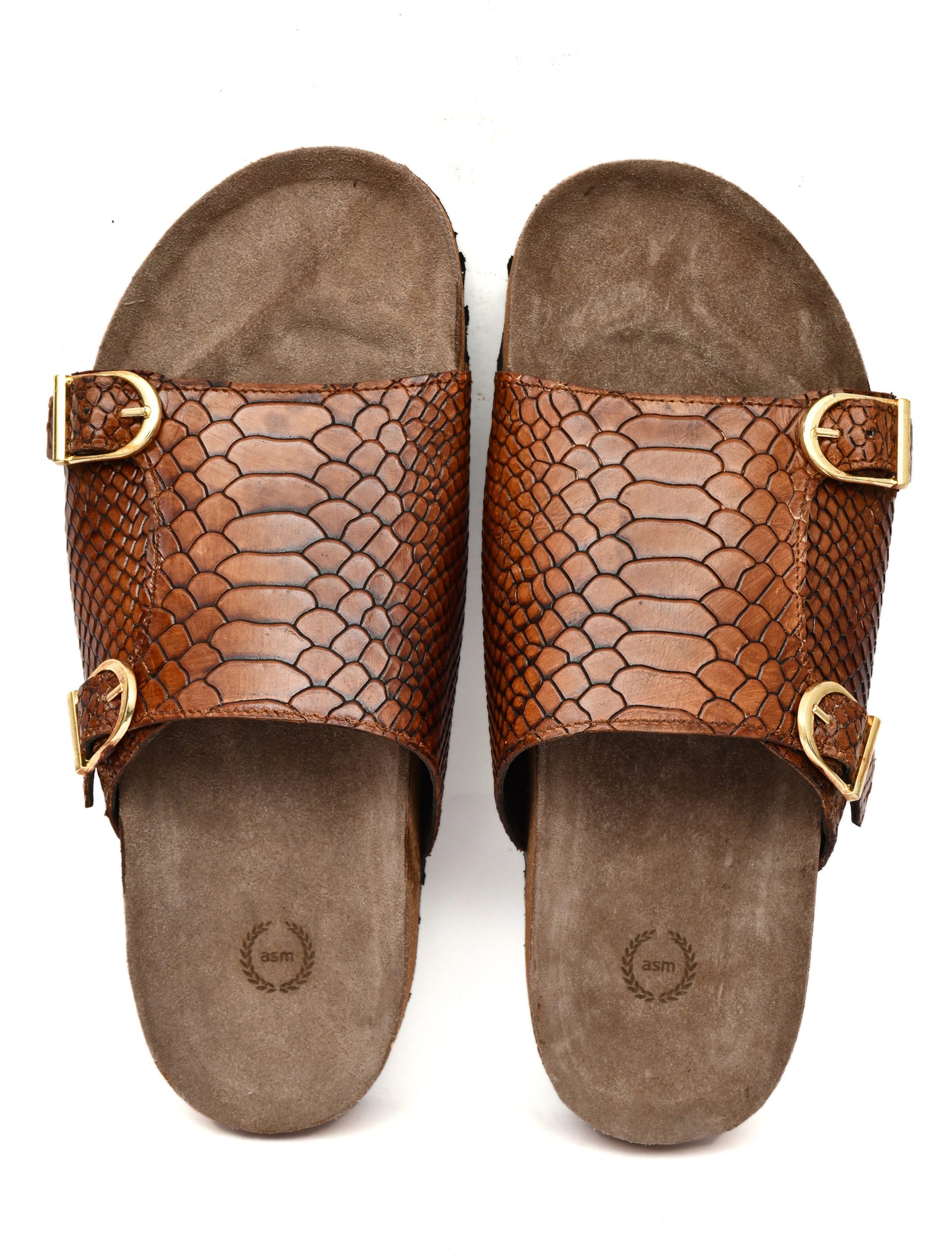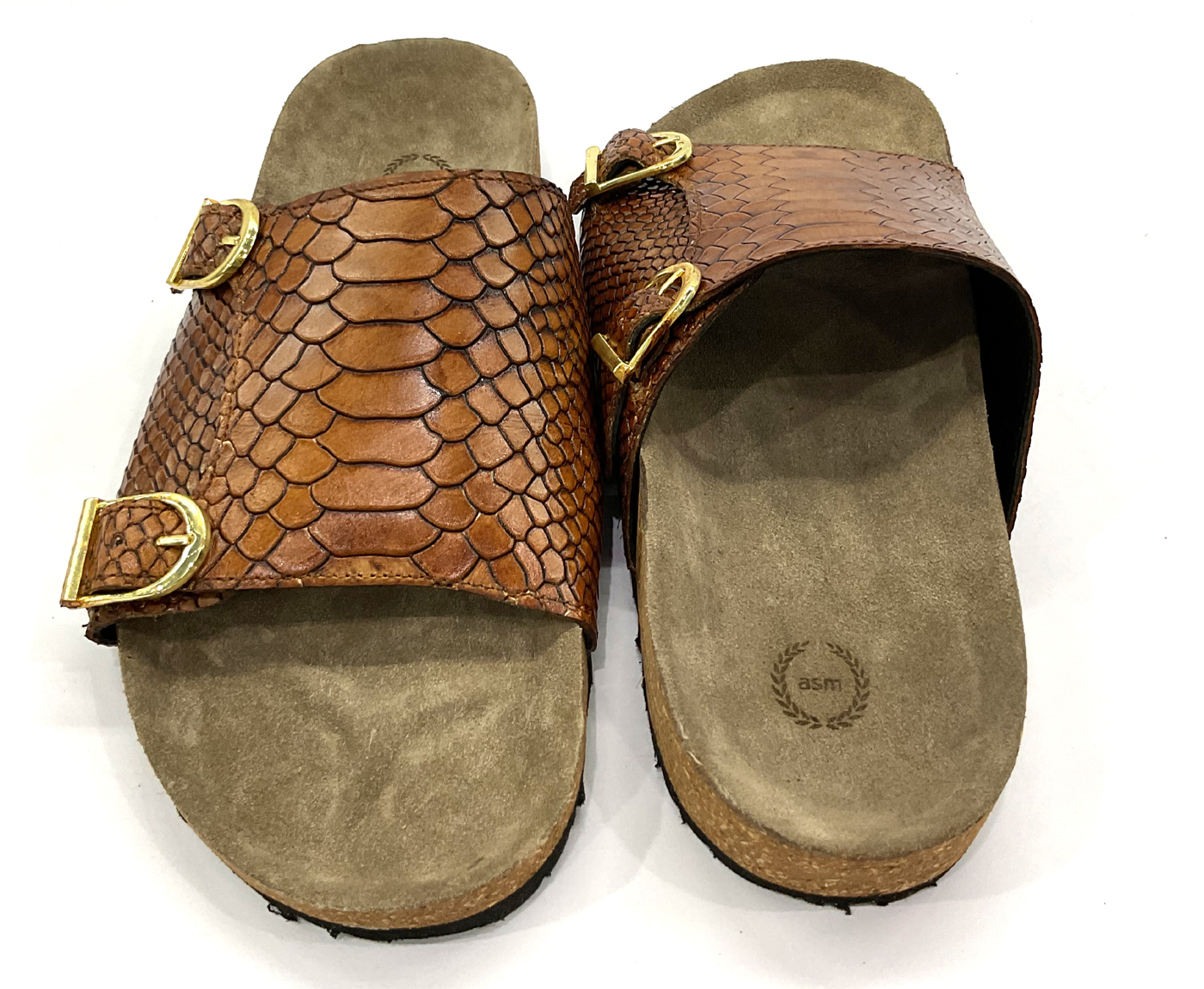 Cork Sandals : Genuine Cobra Embossed Tan leather & Cork Sandals for men by asm. Slc12TanCobra