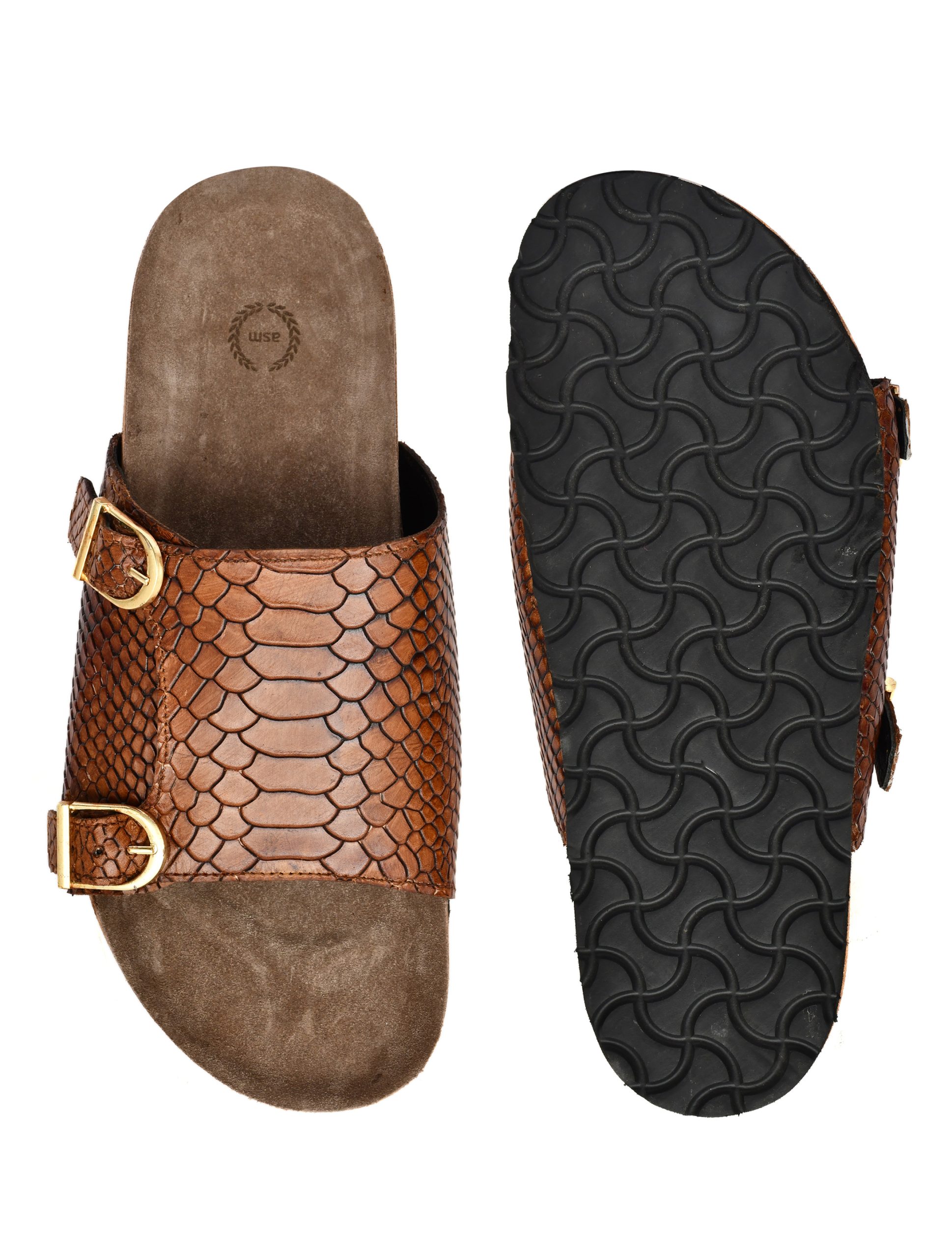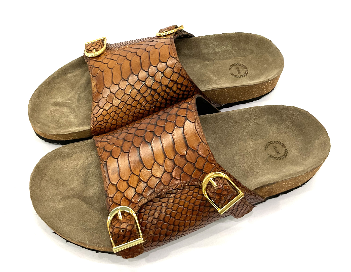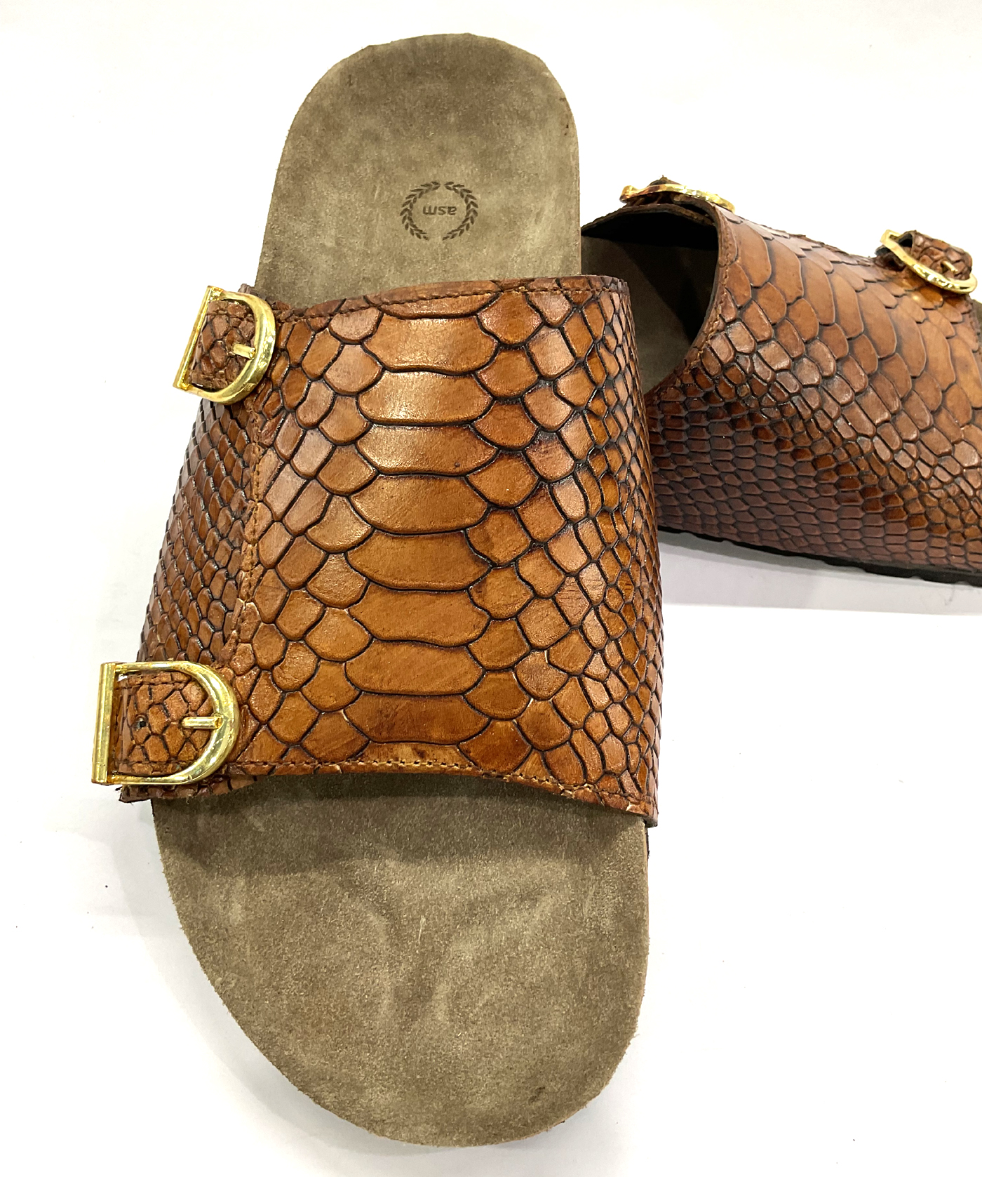 Cork Sandals : Genuine Cobra Embossed Tan leather & Cork Sandals for men by asm. Slc12TanCobra