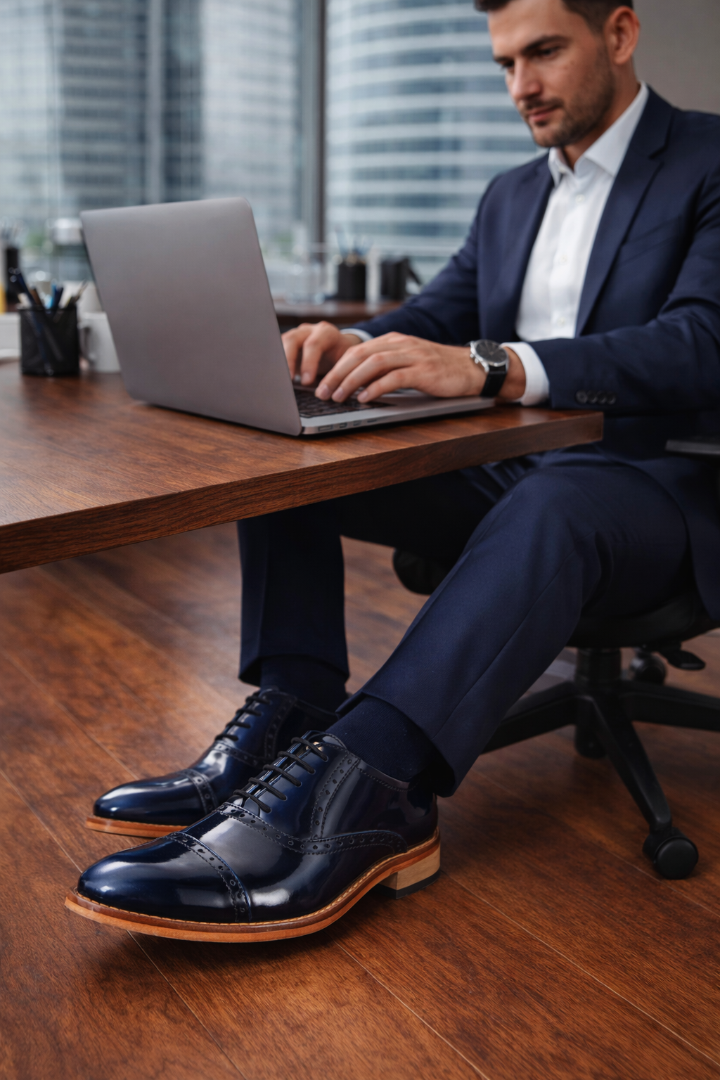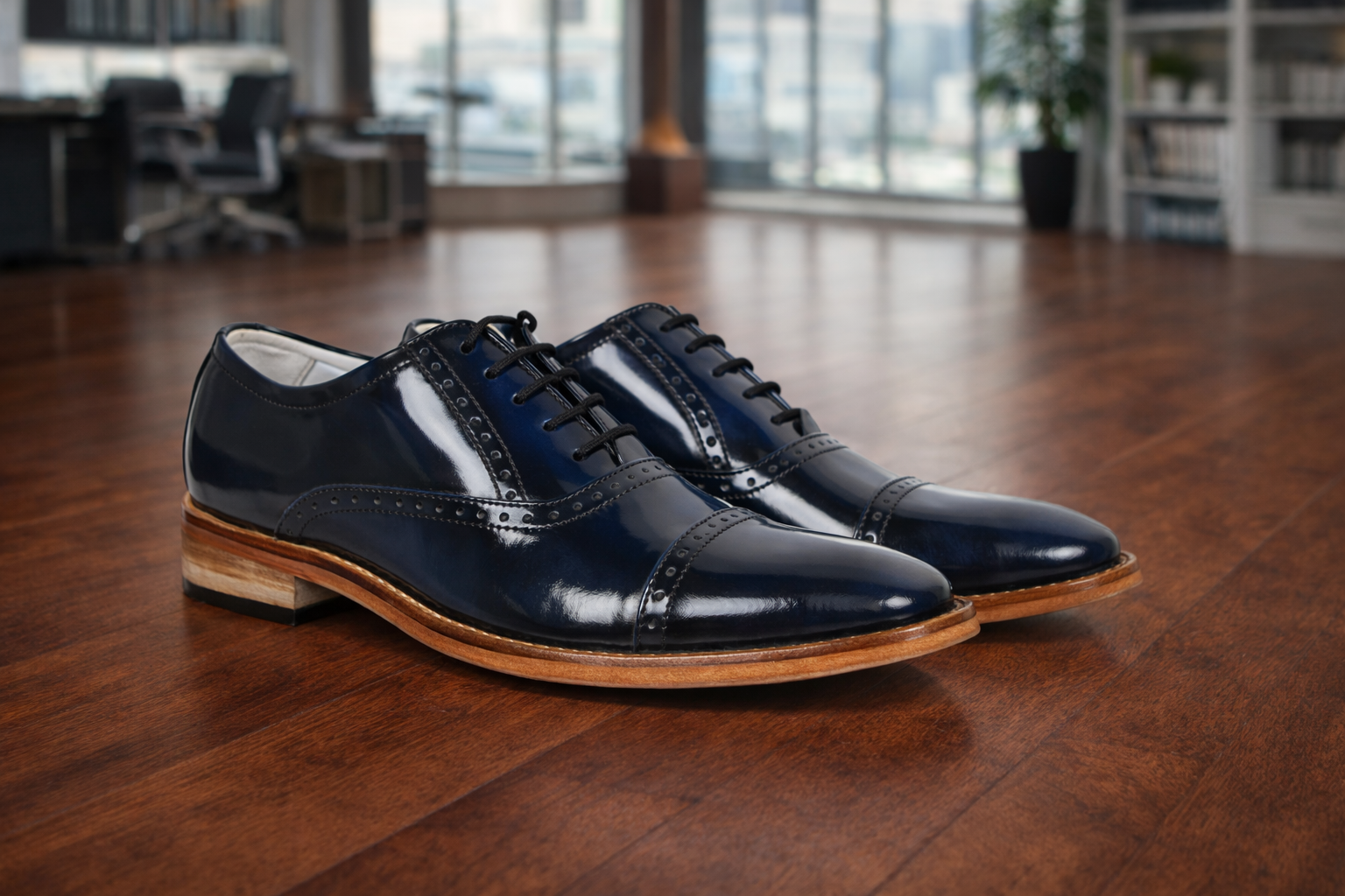 Elevator Shoes : 3″ Inches Hidden Height Increasing Handmade Goodyear Welted Blue leather Oxford Shoes with Argentina Leather Sole, Fully Leather Lining & socks and Memory foam footpad by ASM.
