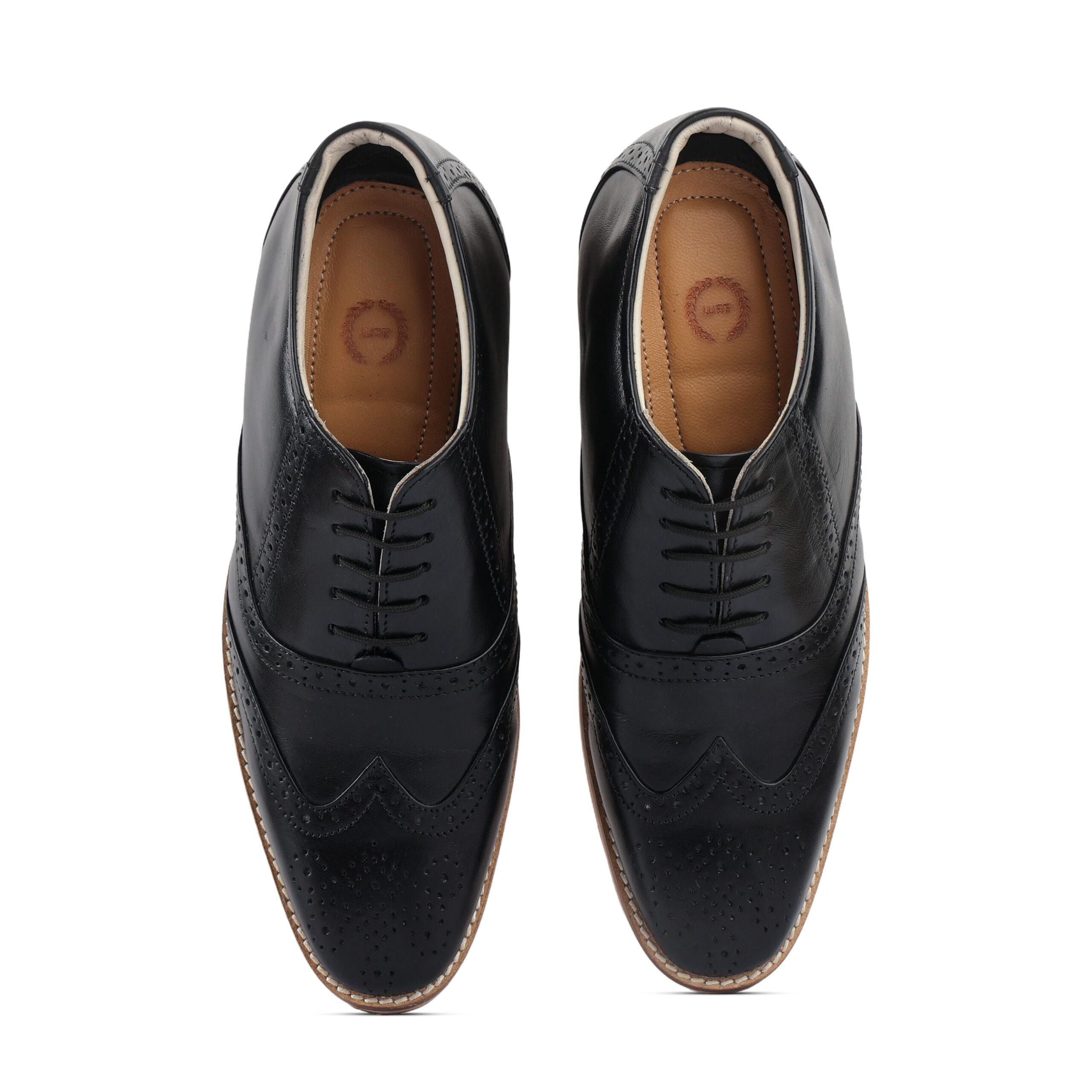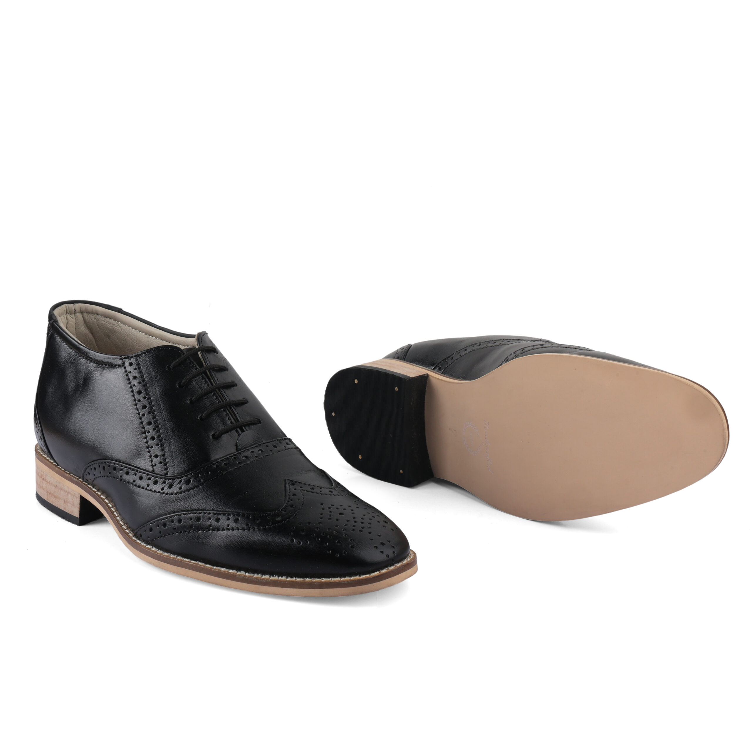 Elevator Shoes : 3″Inches Hidden Height Increasing Black leather Brogue Shoes.