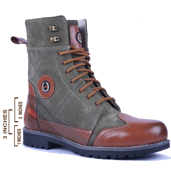 Elevator Shoes for Men, 3″ Inch Hidden Height Increasing Pure leather Boots with Memory foam footpad. ASME-702Green
