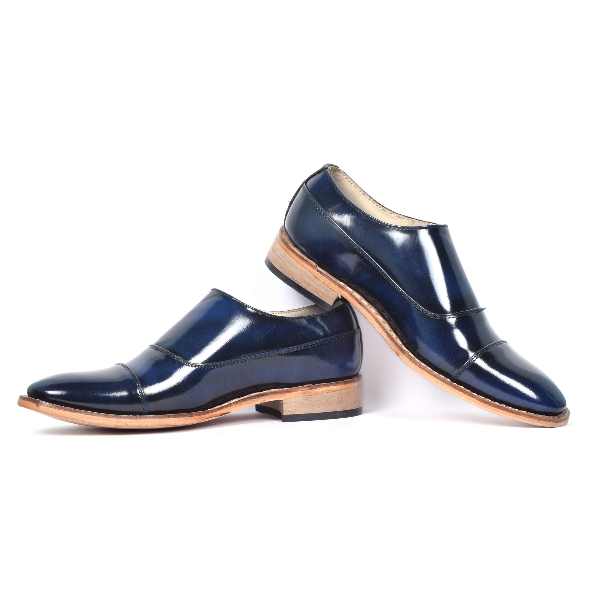 HANDMADE GOODYEAR WELTED BLUE BRUSH ITALIAN LEATHER MONK SHOES by ASM Article : H110-Blue