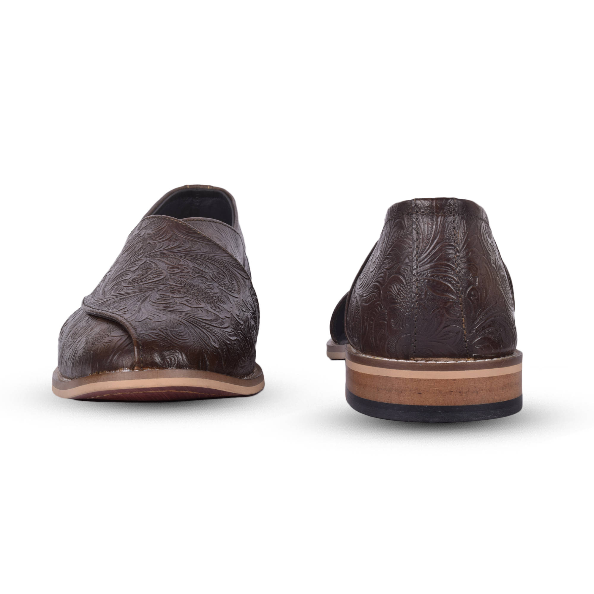 Peshawari Leather Sandals, Imported Leather upper, Softy Leather Lining with Memory Foam footpad for optimum comfort. Peshawari04_FLora_OliveGreen