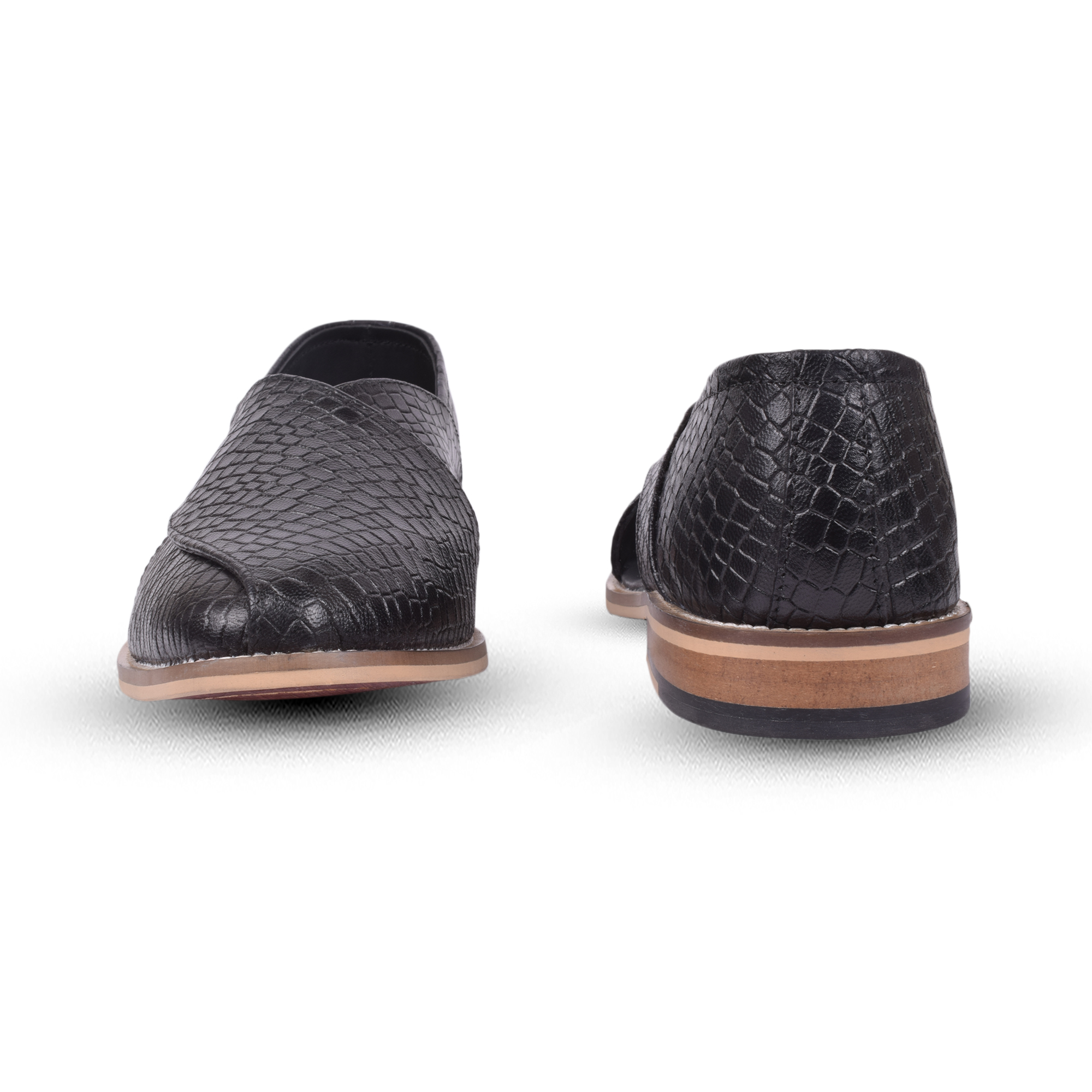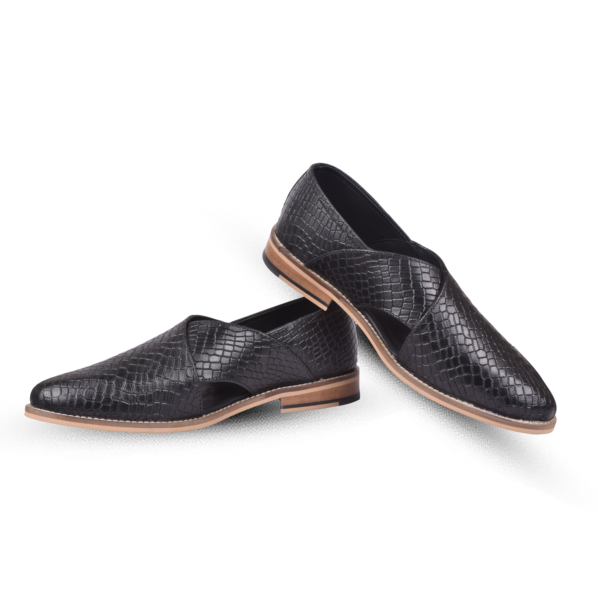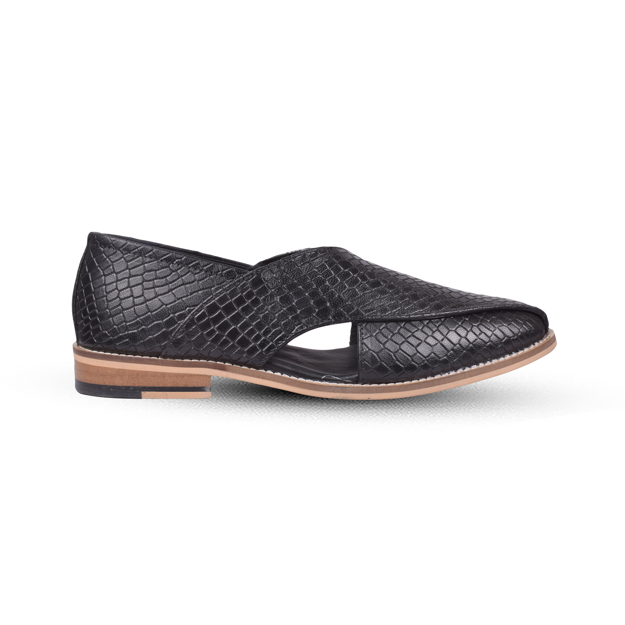 Peshawari Leather Sandals, Imported Leather upper, Softy Leather Lining with Memory Foam footpad for optimum comfort. Peshawari11-Alligator-Black