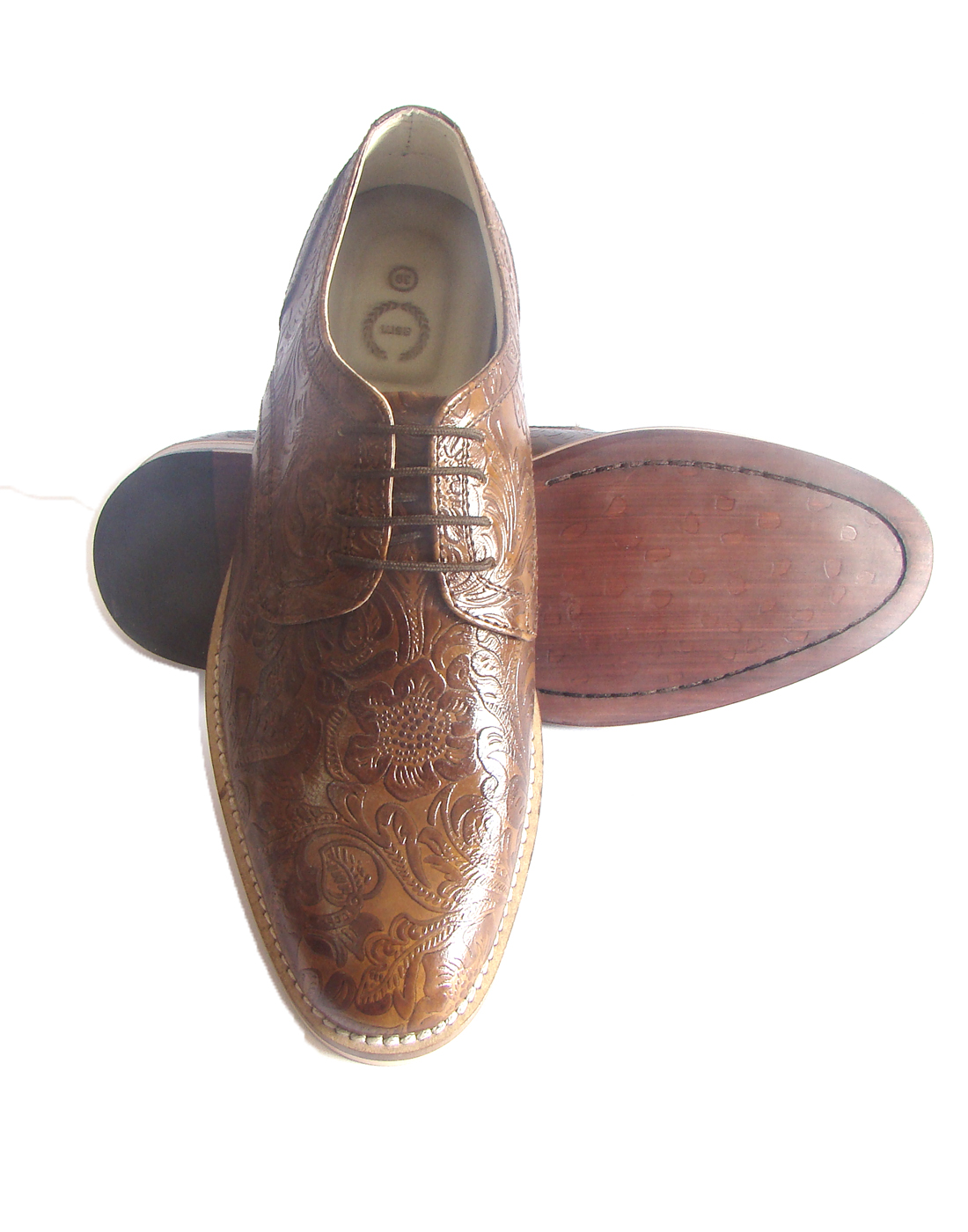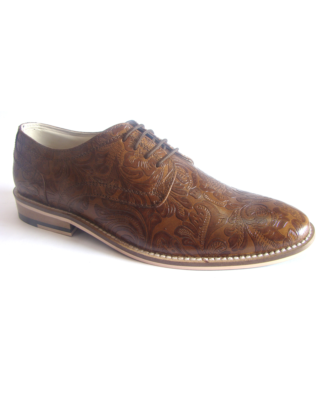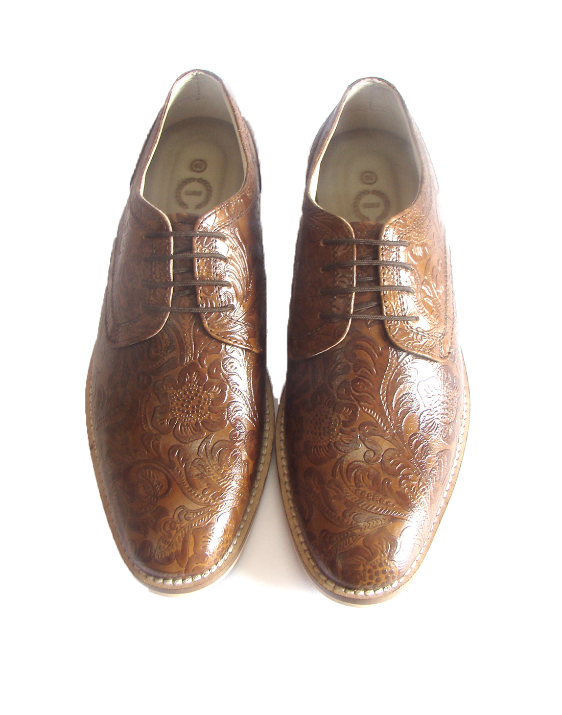 PINE COLOR ITALIAN FLORA LEATHER DERBY SHOES Article-HU201