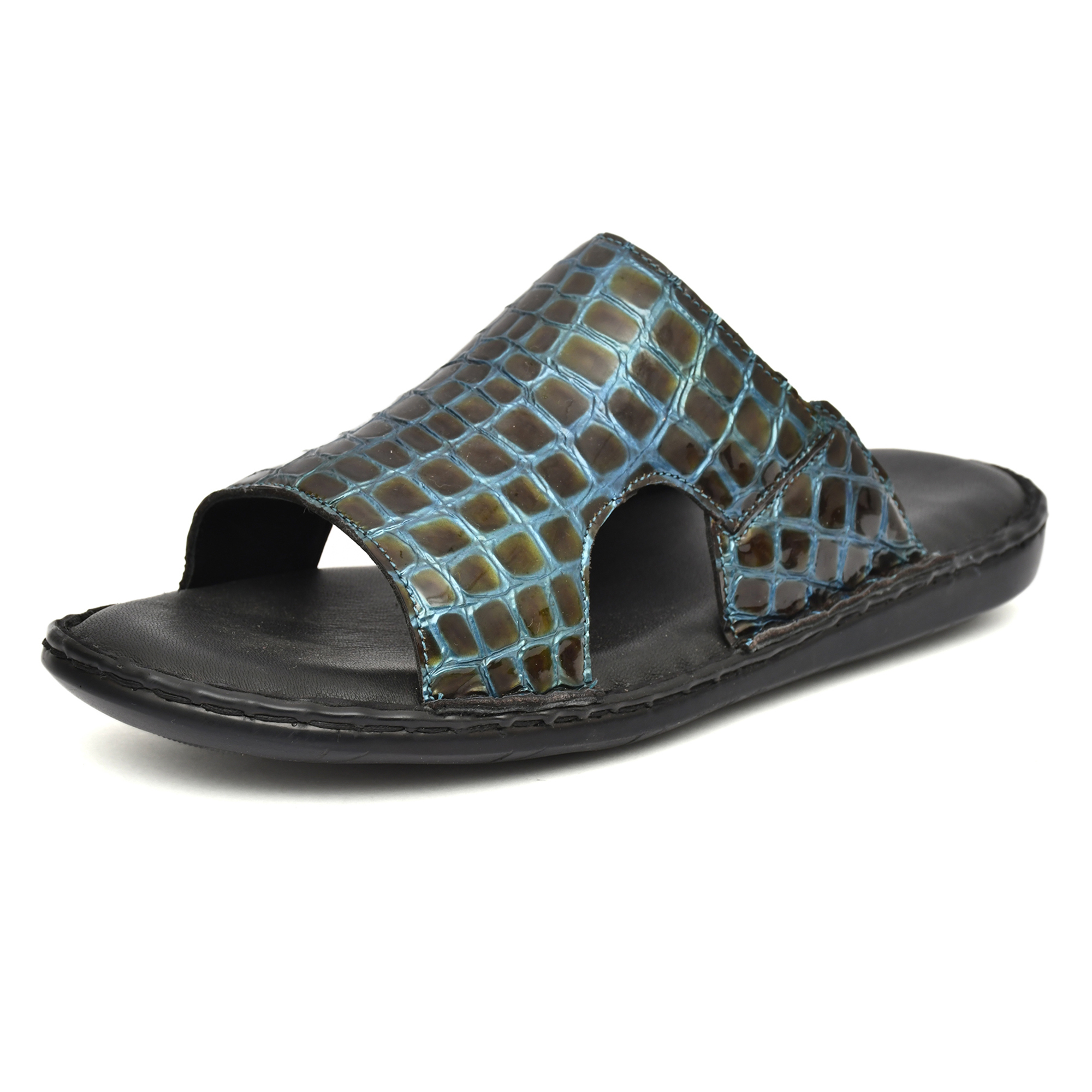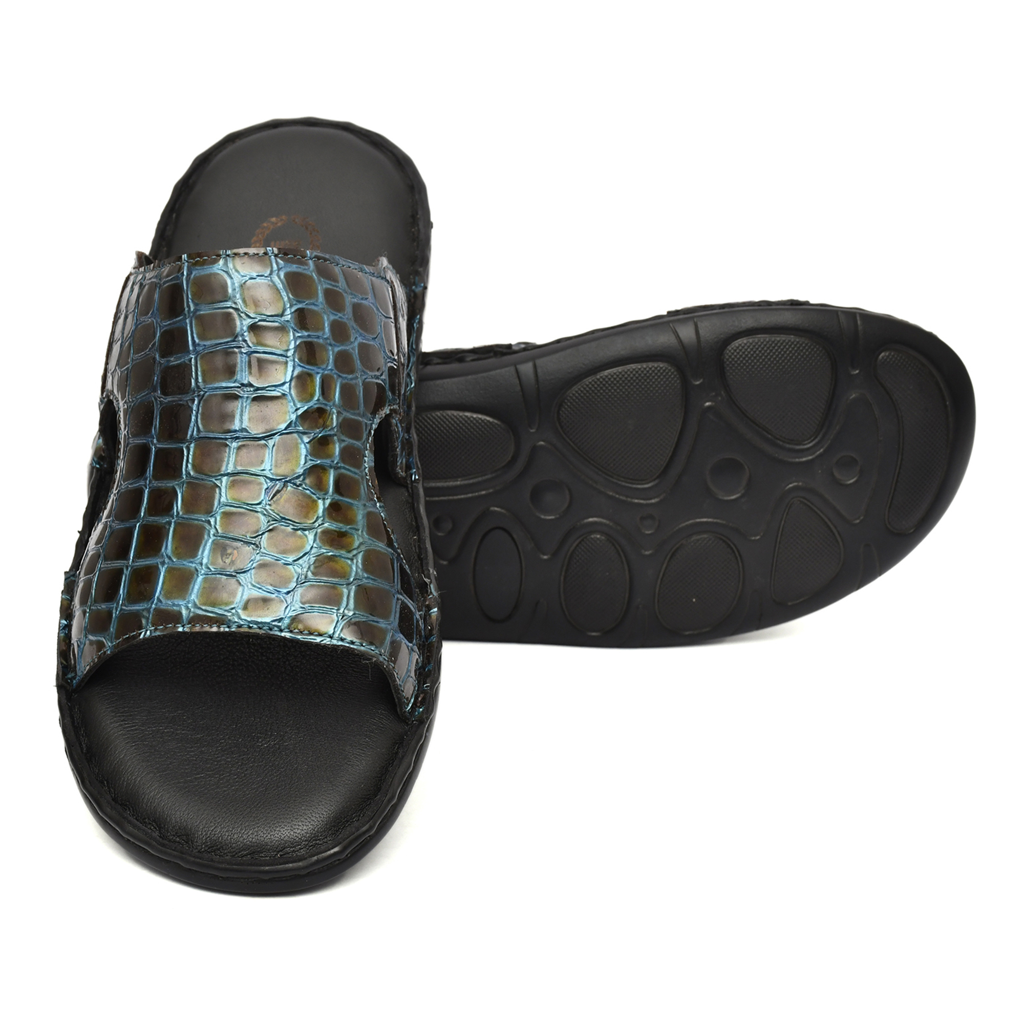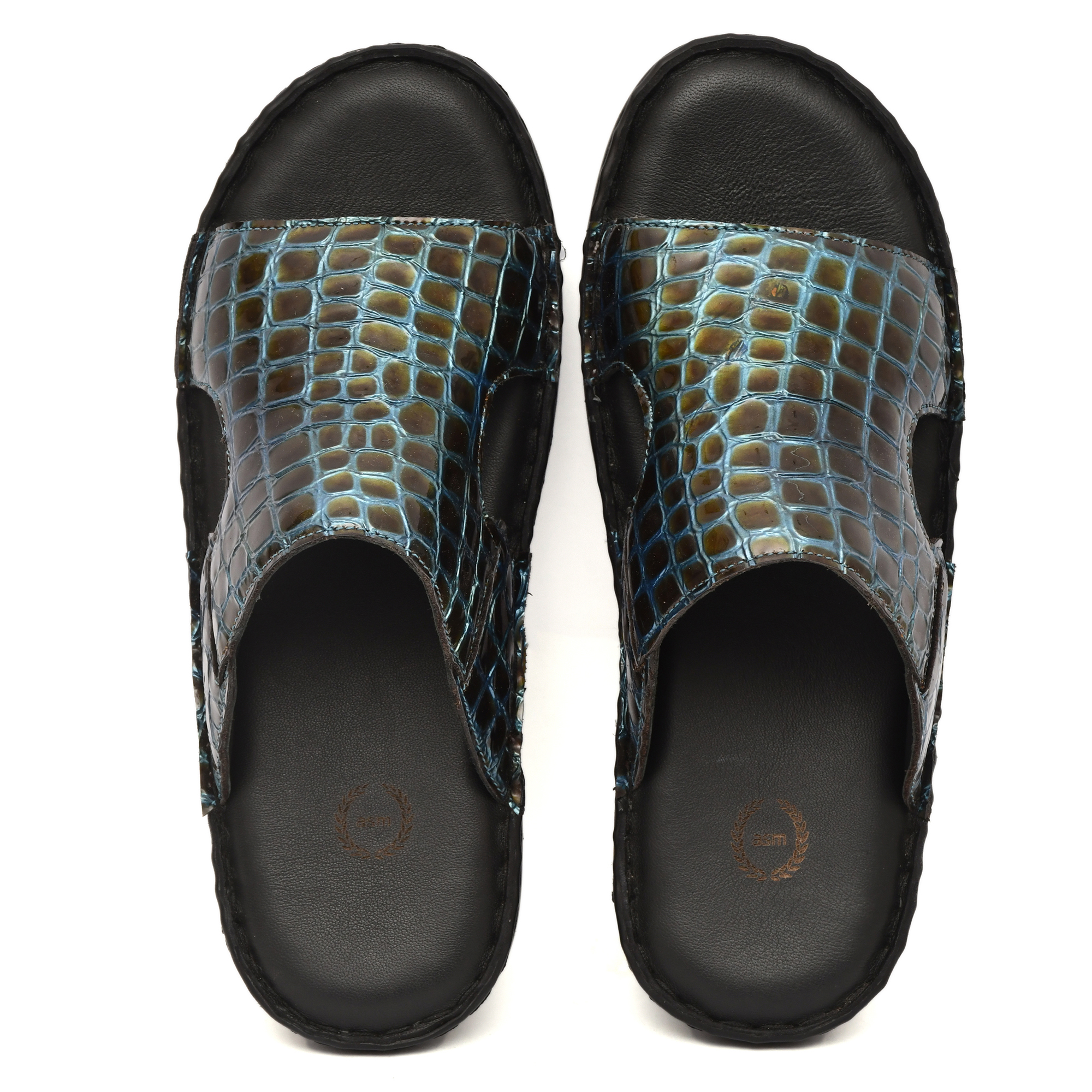 Turquoise Alligator Embossed Leather Slippers for Mens with Memory foam footpad & TPR Sole by asm. Article : SL08-PATurquoise – Size available  : UK  5- 12