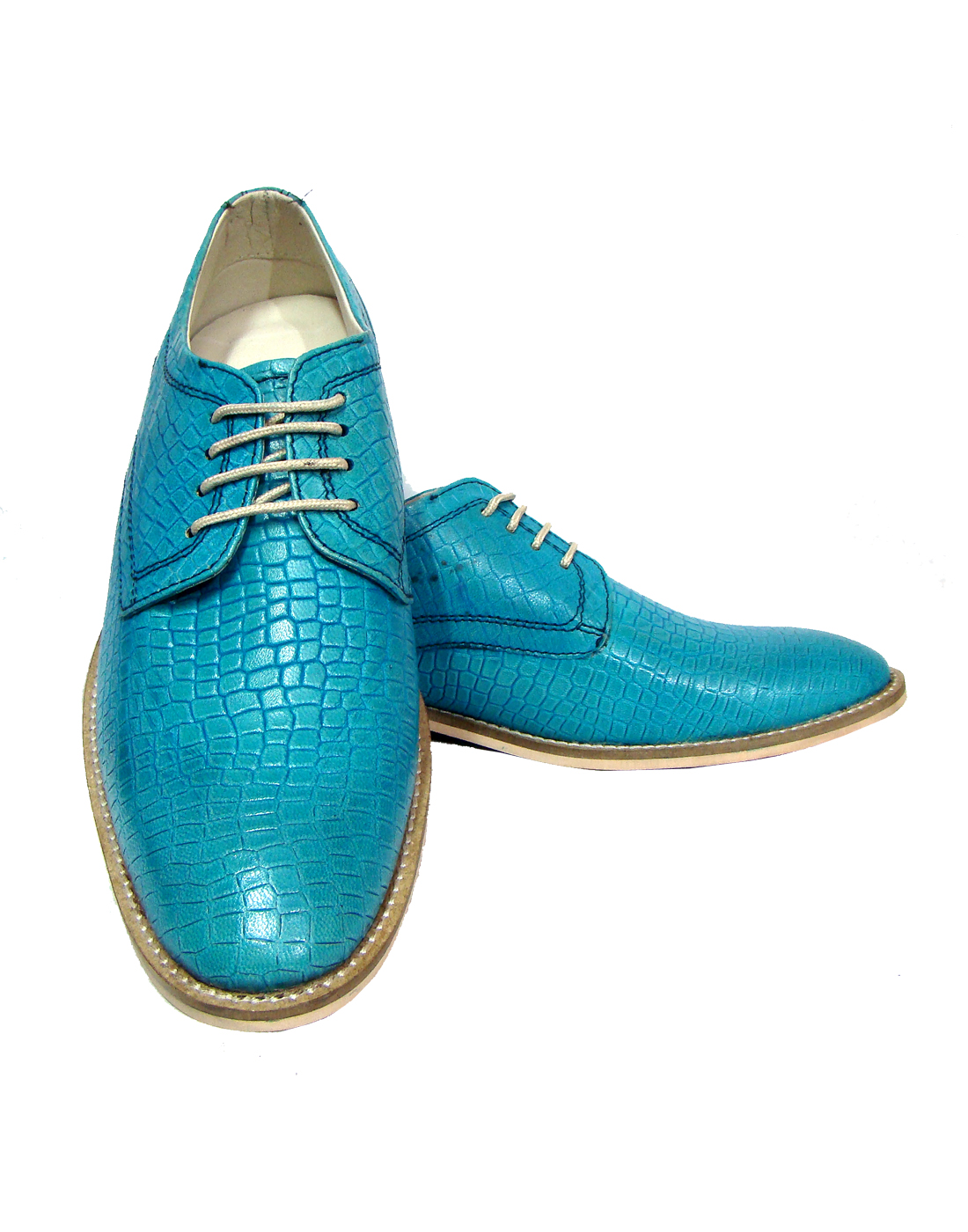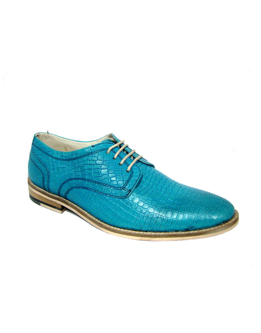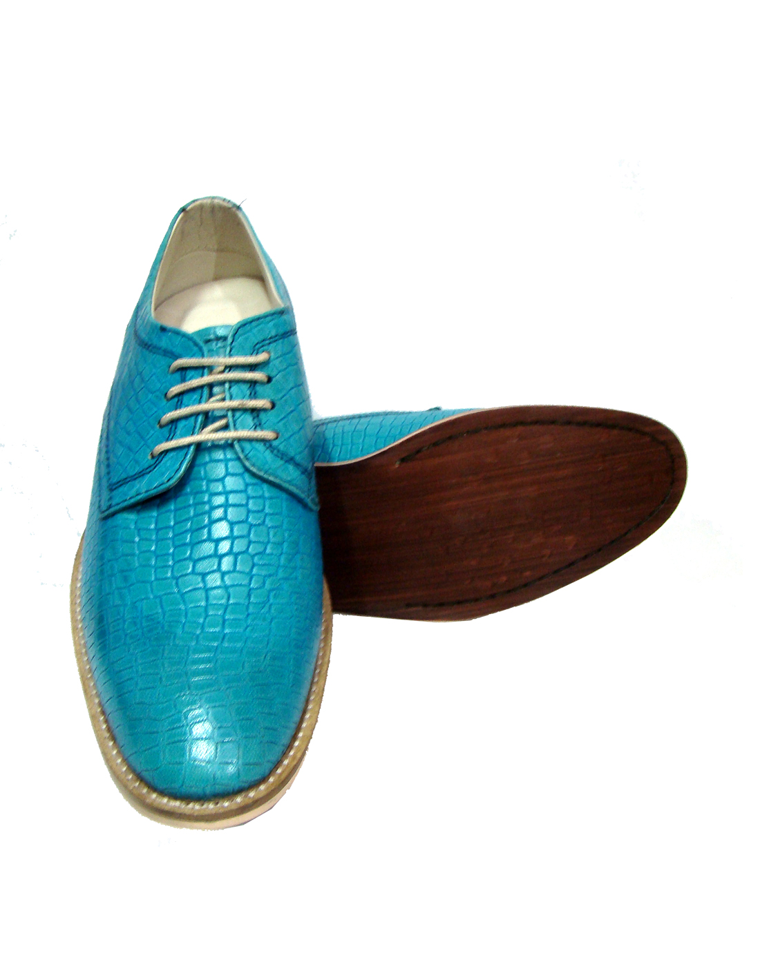 TURQUOISE BLUE DERBY SHOES WITH TWO-TONE HAND FINISH ALLIGATOR LEATHER ARTICLE-HU167