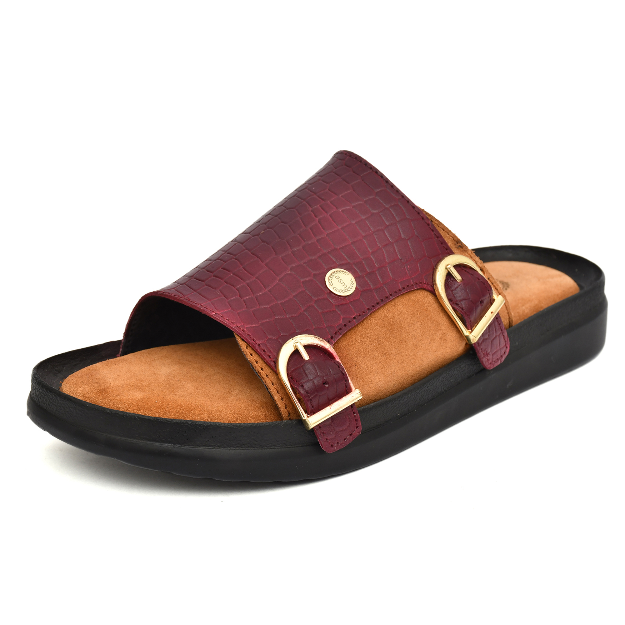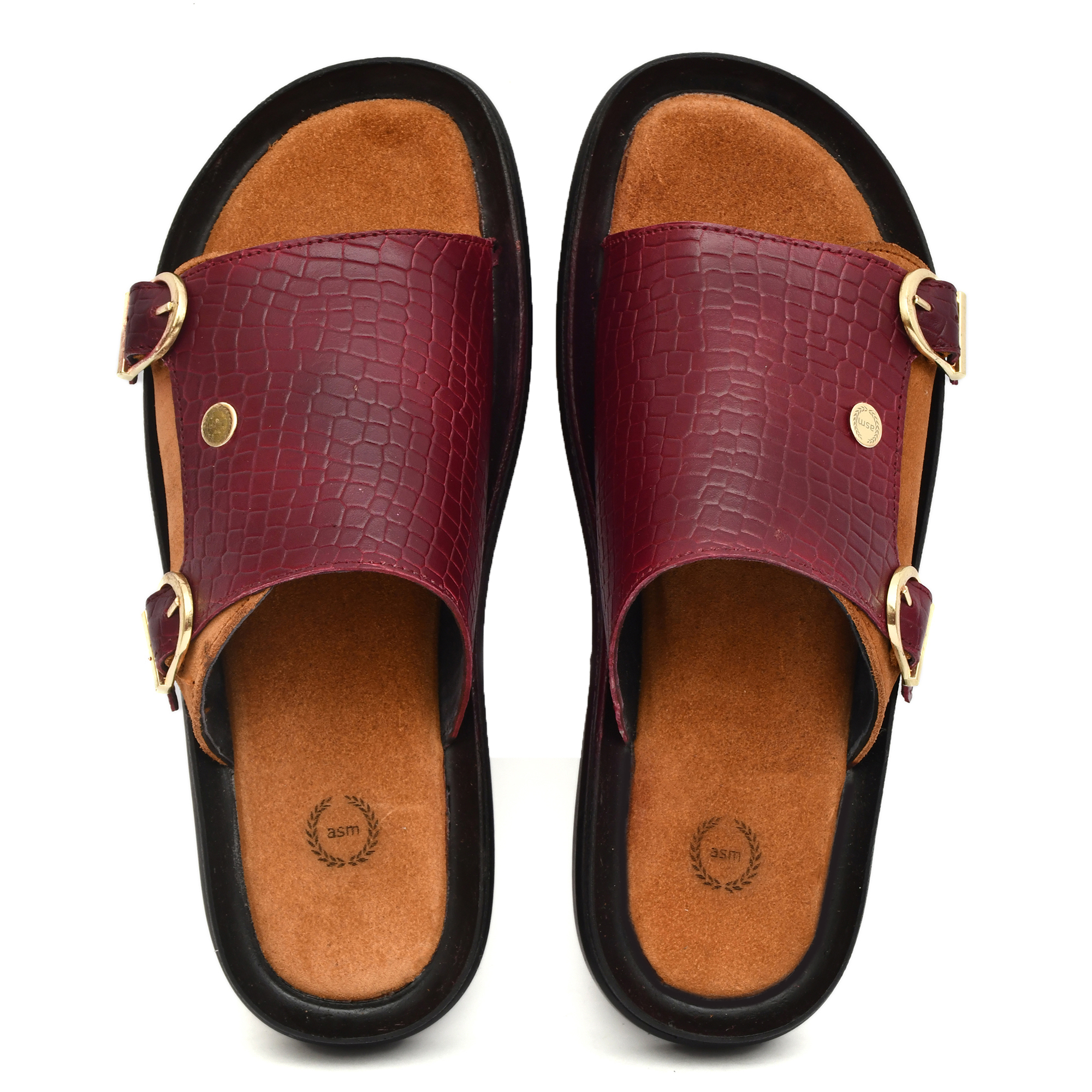 Wine Alligator Embossed Leather Slippers for Men with Memory foam footpad by asm. Article : SL012-WineAlligator – Size available: UK 5-11
