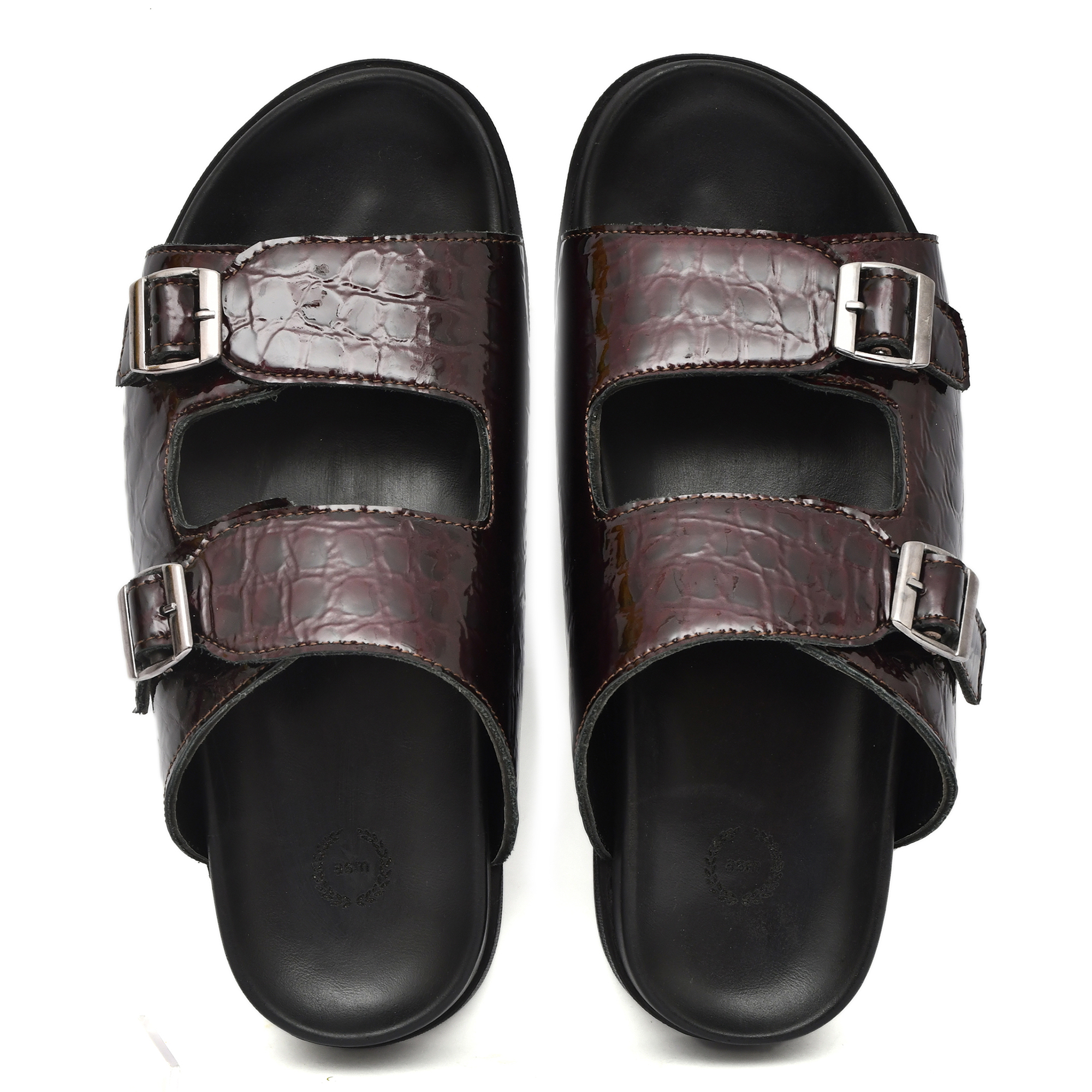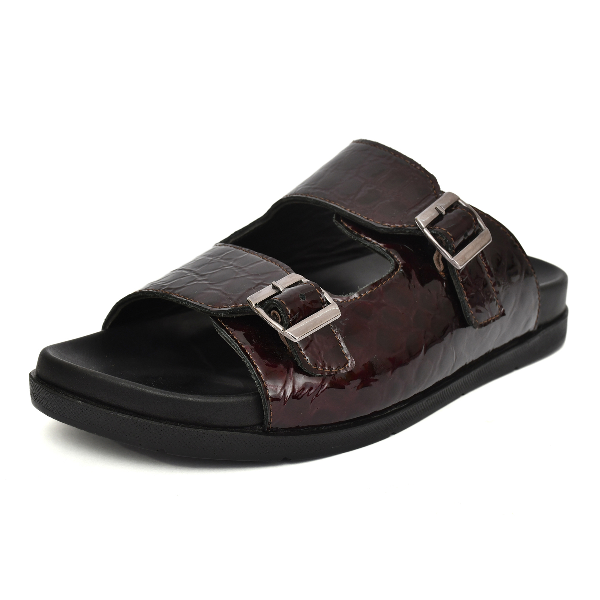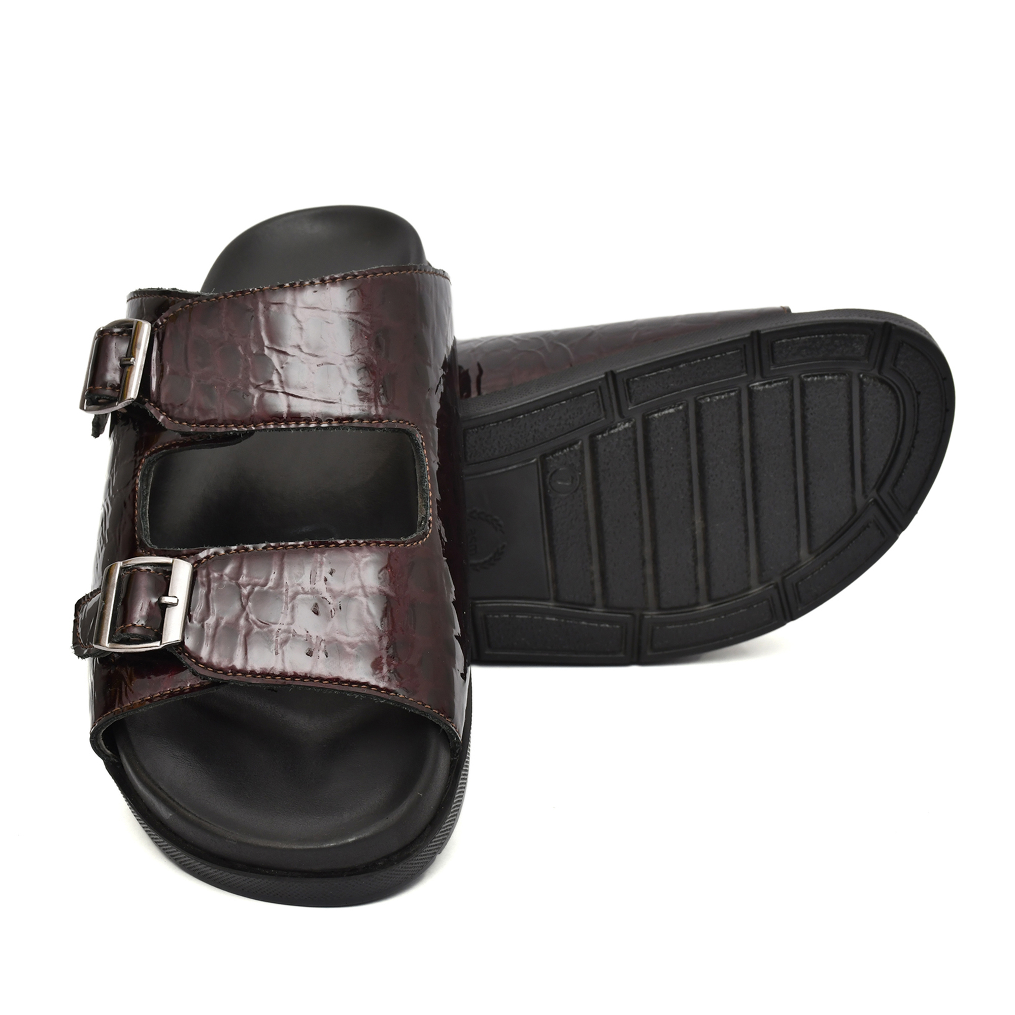 Wine Alligator Embossed Leather Slippers for Mens with Memory foam footpad & TPR Sole by asm. Article : SL09-APWine-Size available: UK 5-12