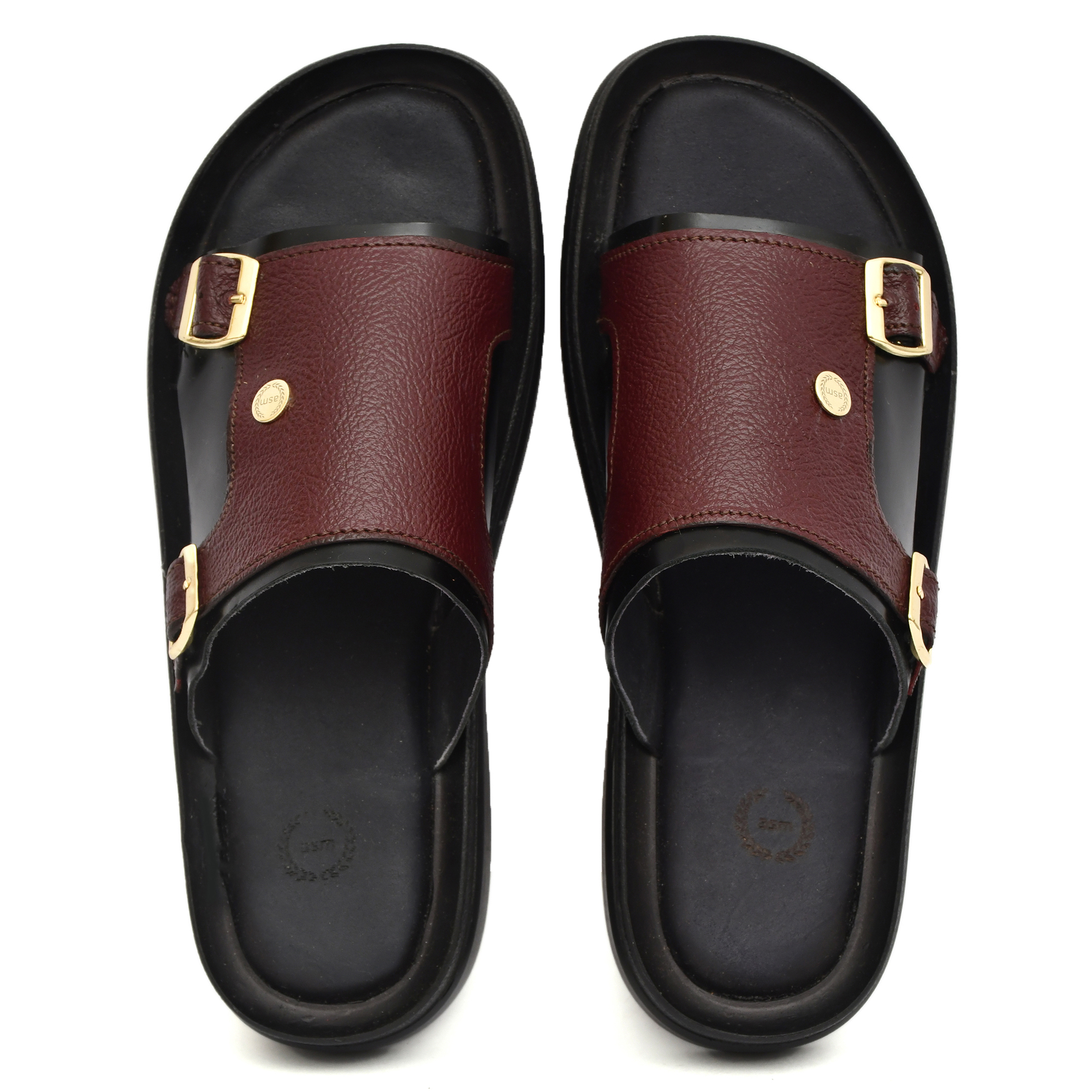 Wine Leather Slippers with Memory foam footpad for Men by asm. Article: SL011-Wine -Size available: UK 5-11