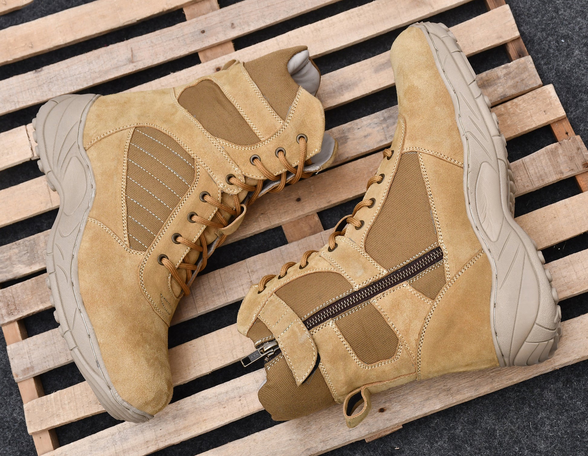 Air Forcer Boots : Beige Suede leather wit Side Brass Zip & Memory foam footpad & heavy duty Phylon Sole by ASM.