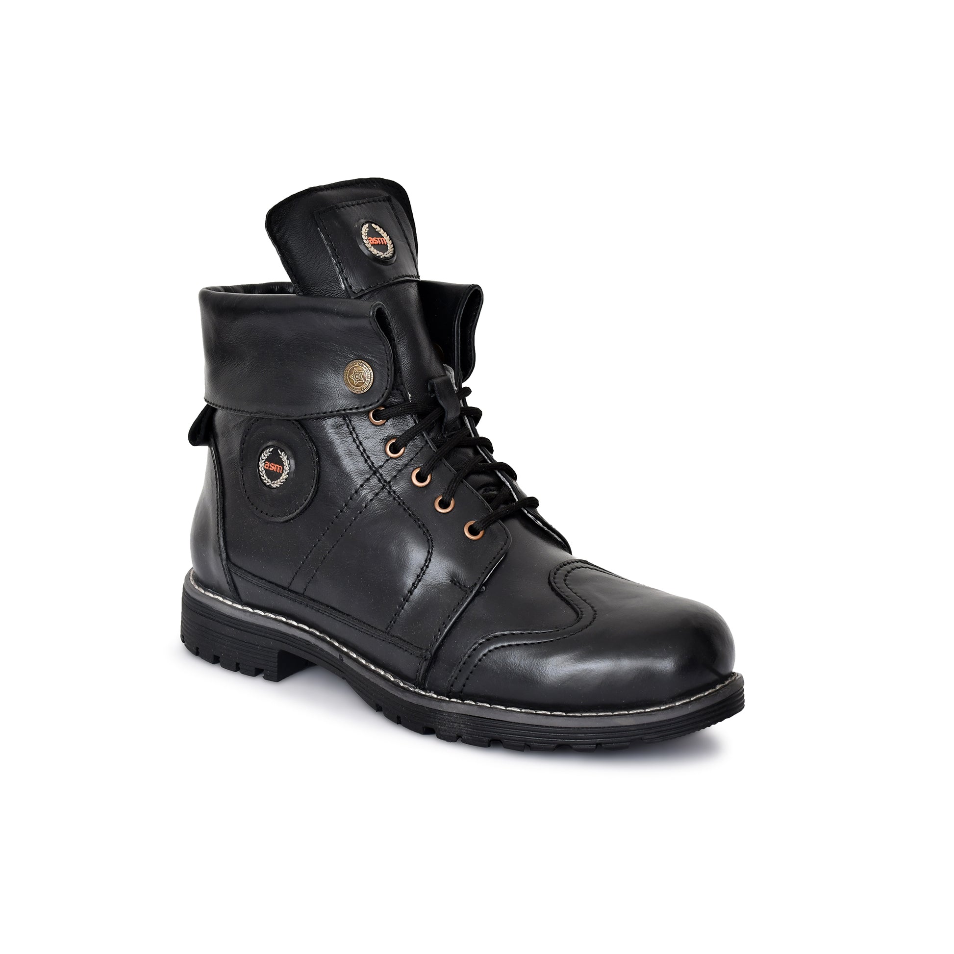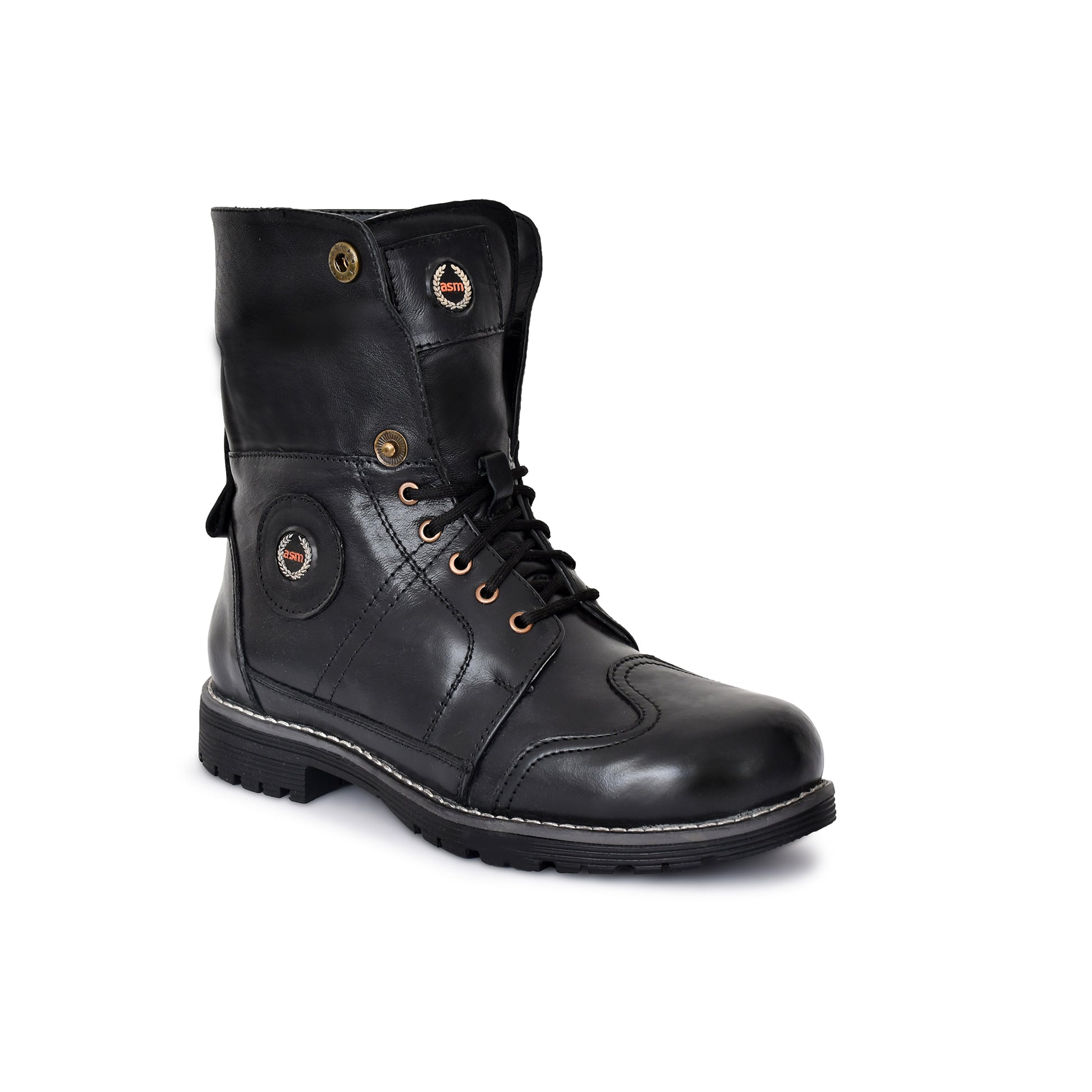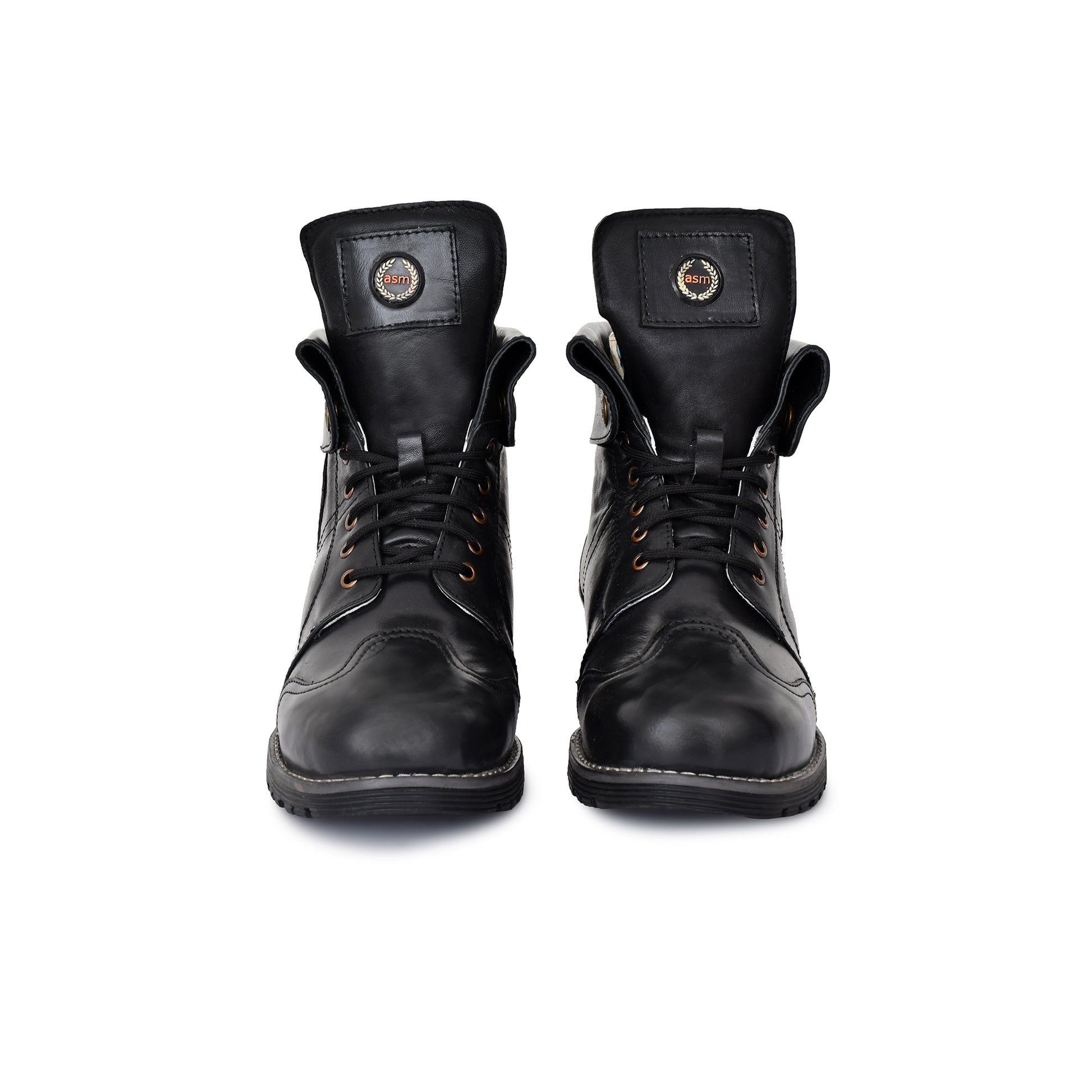 Rider Boots : 6 & 9 Inches Foldable Black leather for bikers Memory foam footpad & heavy duty TPR Sole by ASM.