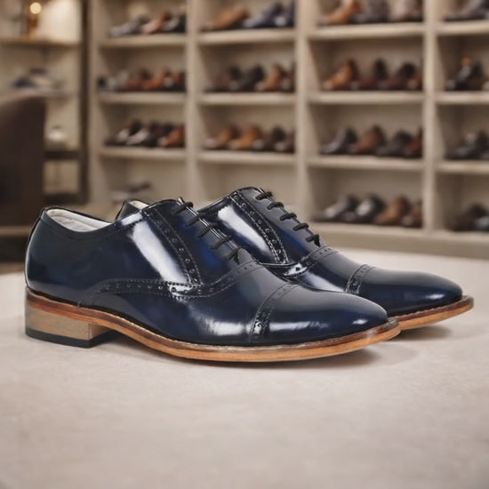 Elevator Shoes : 3″ Inches Hidden Height Increasing Blue Leather Oxford Shoes.